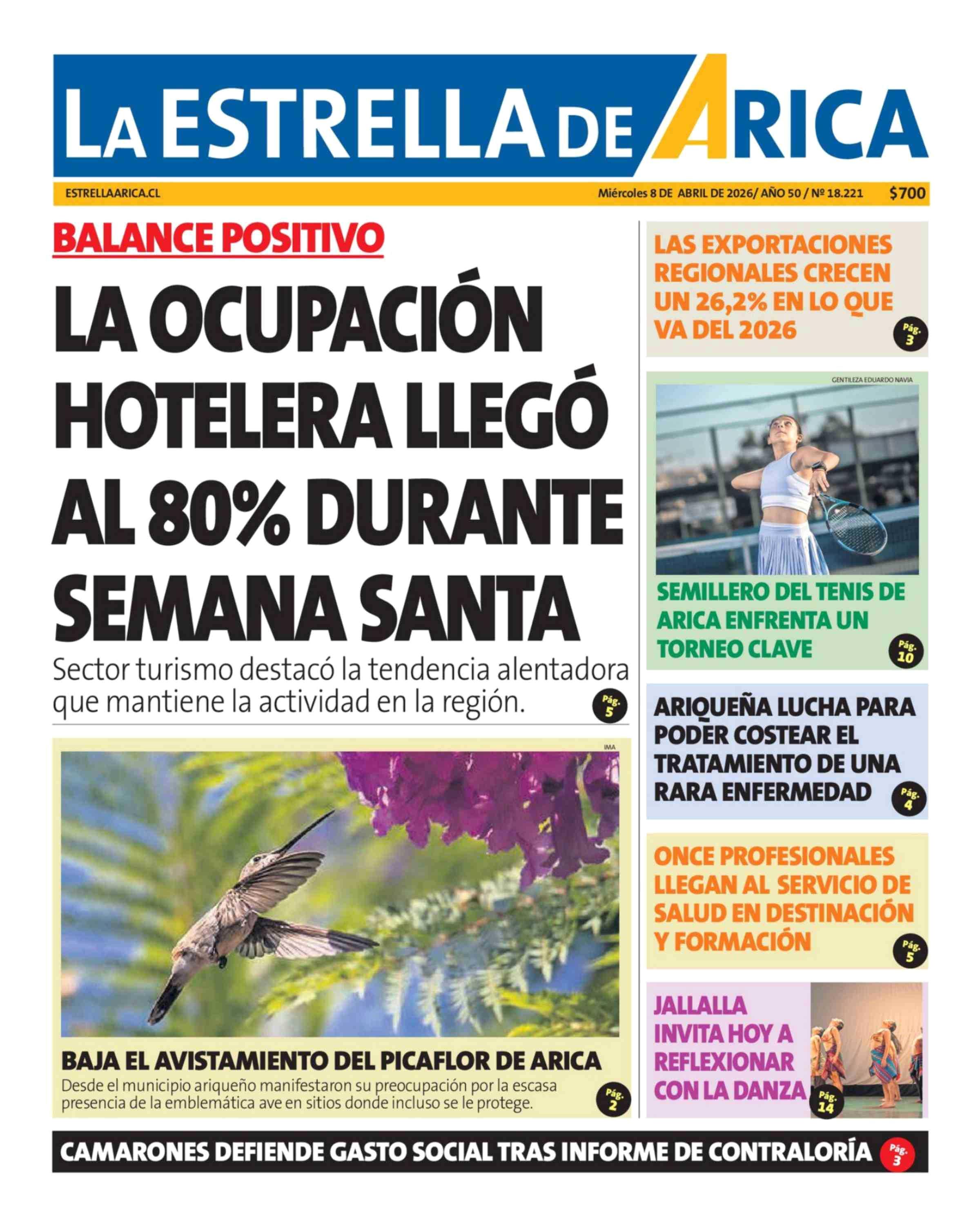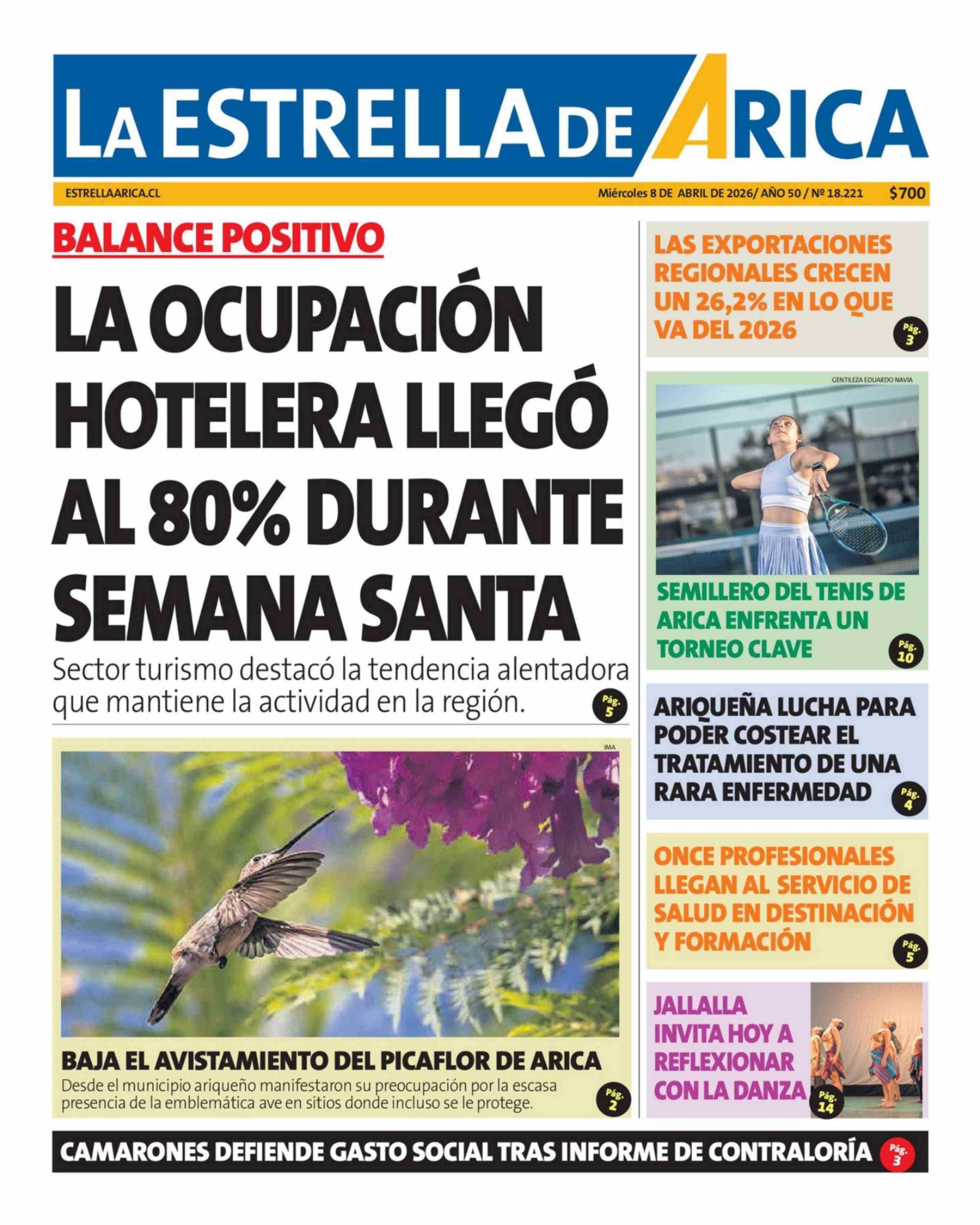 | Fecha: | 08-04-2026 | Sector: | Portada | Región: | Región de Arica y Parinacota |