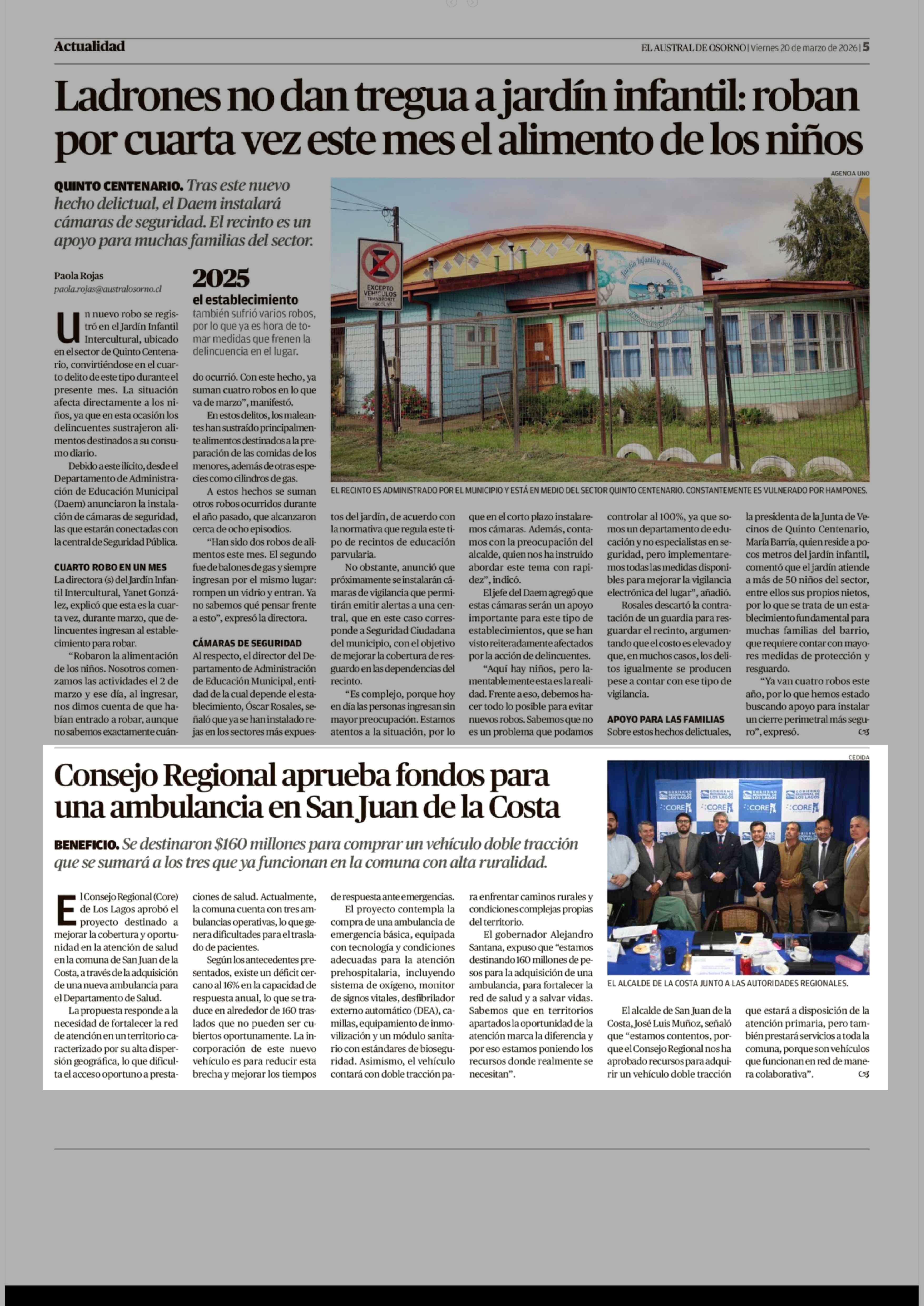 Fuente: El Austral de Osorno (El Austral de Osorno) Página(s): 5