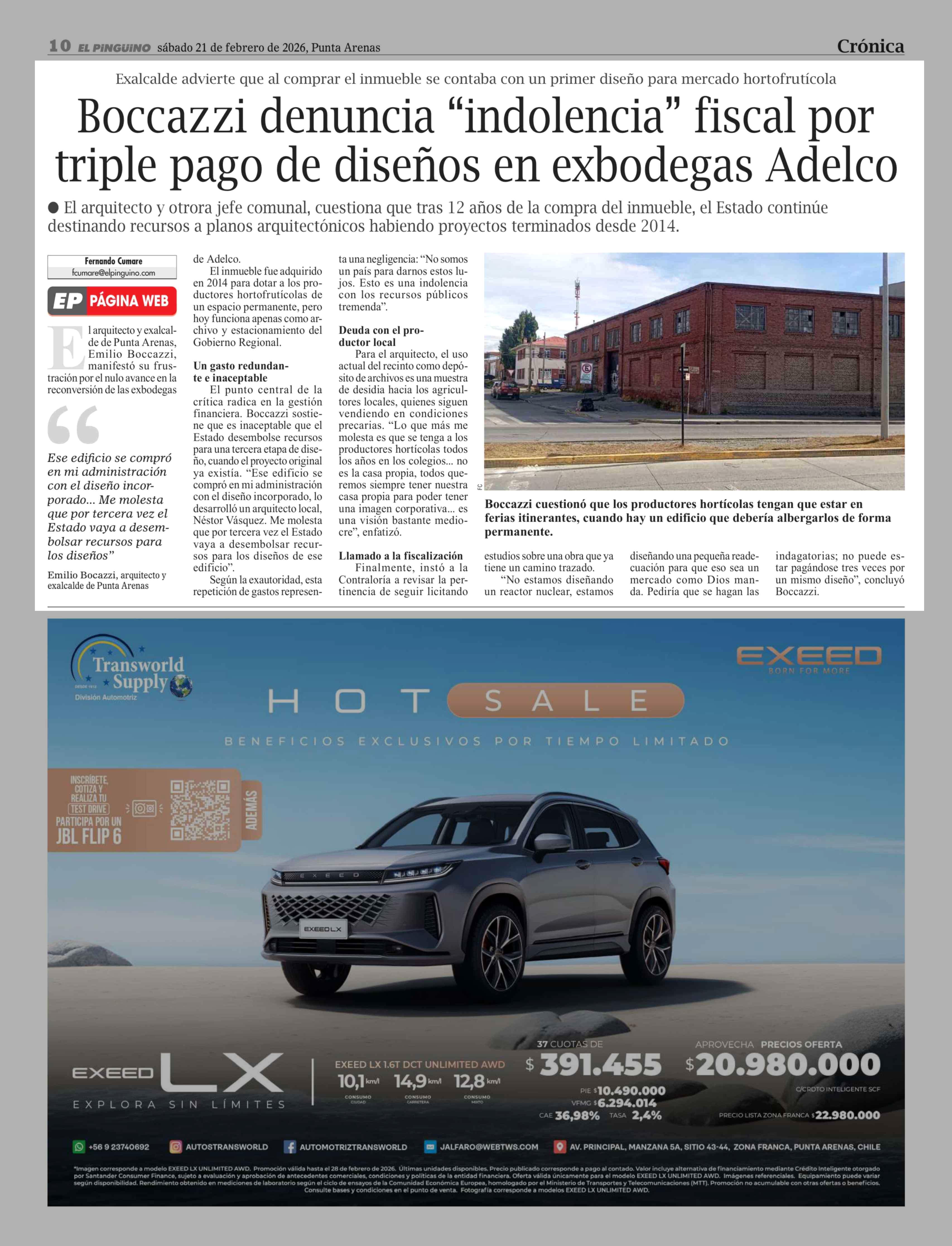 Boccazzi denuncia "indolencia" fiscal por triple pago de diseños en exbodegas Adelco 21-02-2026 El Pingüino |