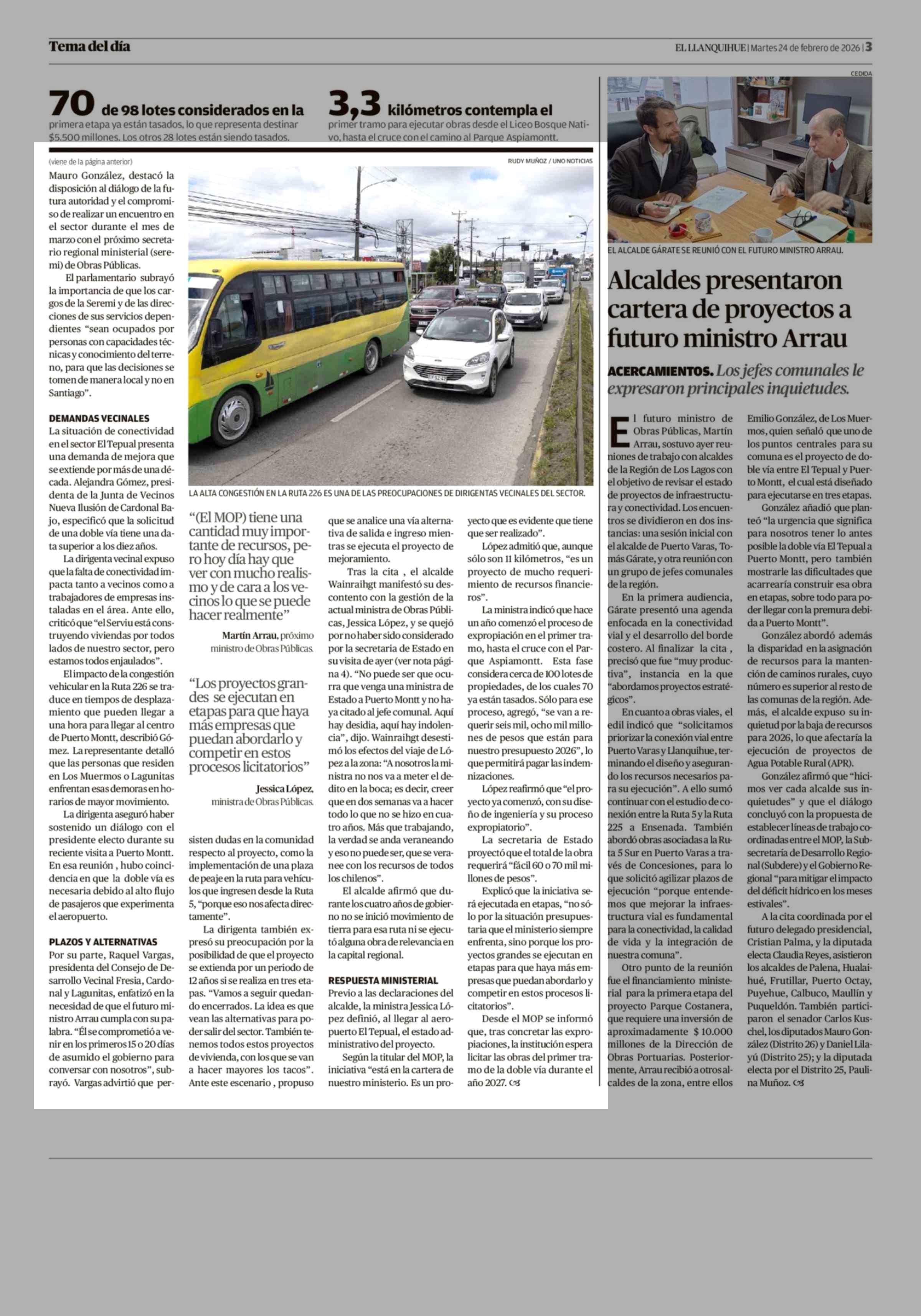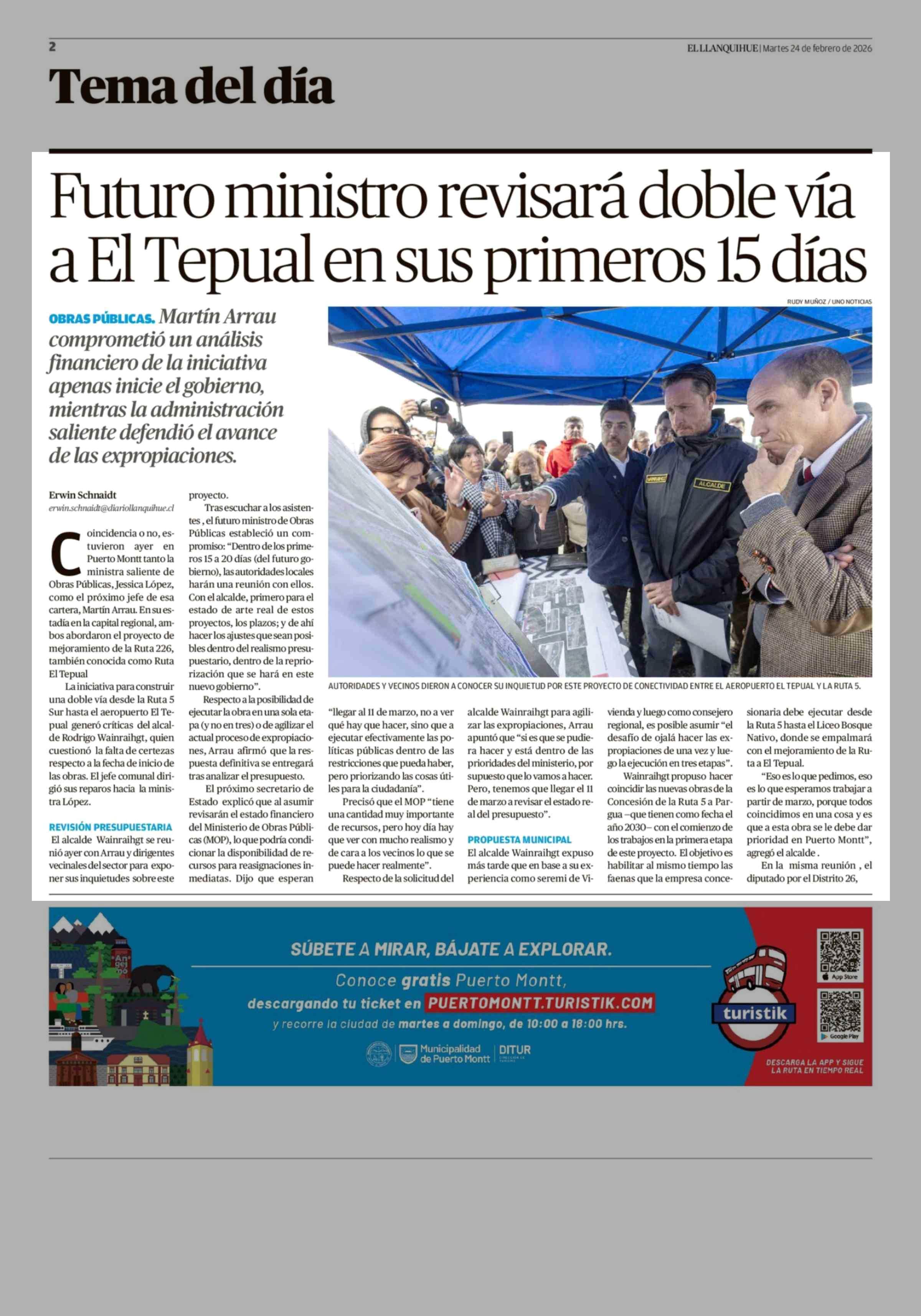 Futuro ministro revisará doble vía a El Tepual en sus primeros 15 días 24-02-2026 El Llanquihue |