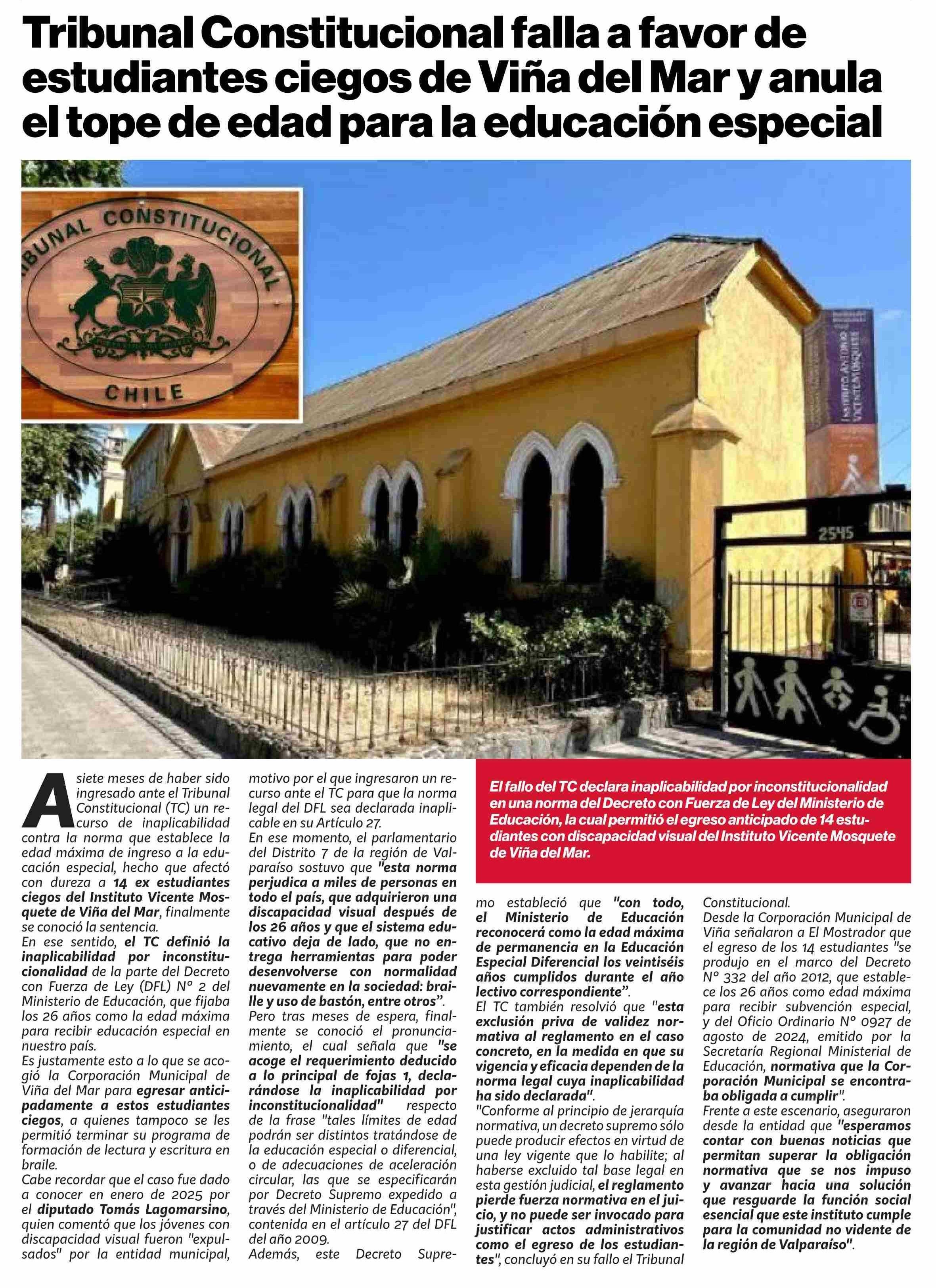 Título: Tribunal Constitucional falla a favor de estudiantes ciegos de Viña del Mar y anula el tope de edad para la educación especial