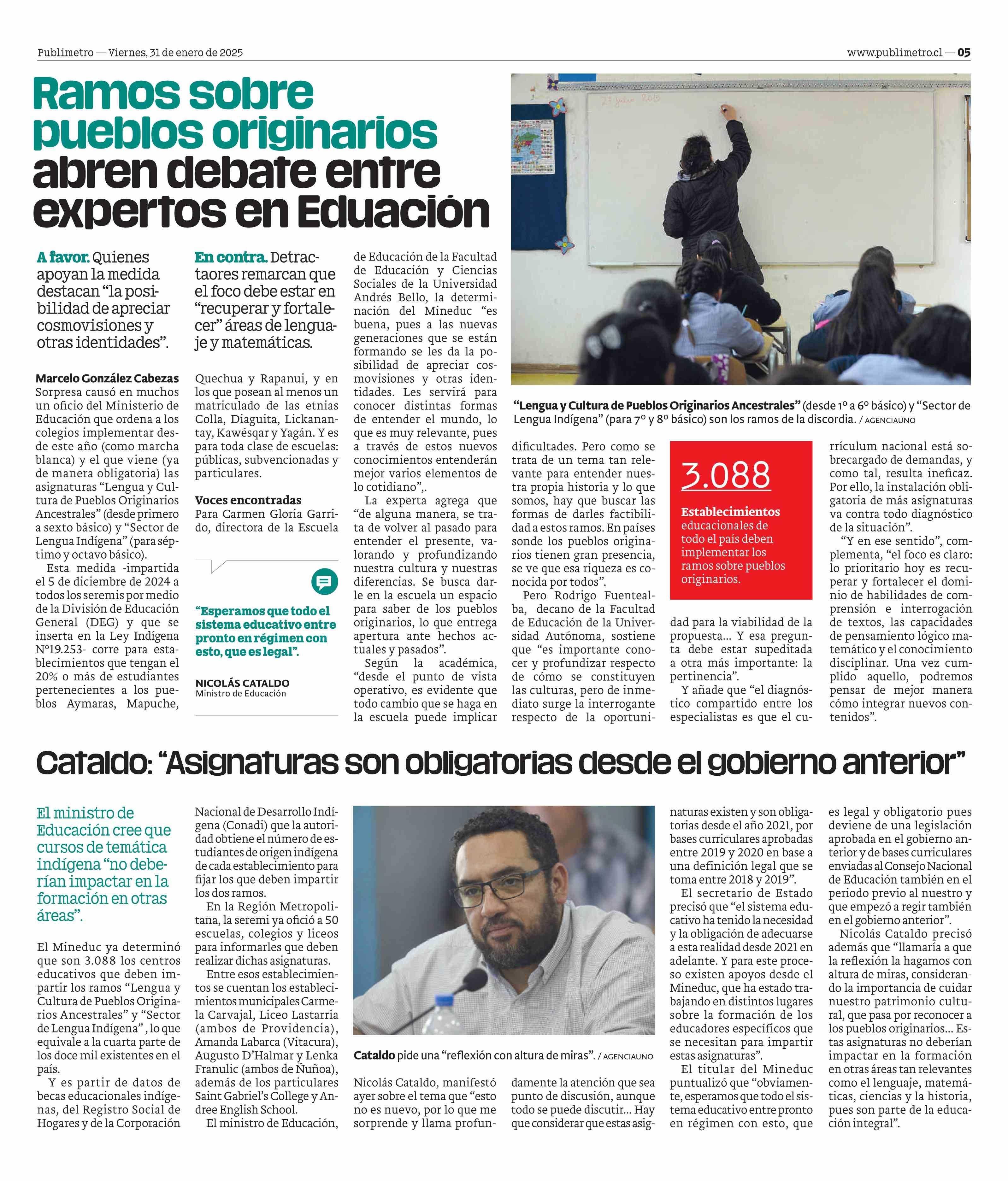Ramos sobre pueblos originarios pueblos originarios expertos en Eduación 31-01-2025 Publimetro |