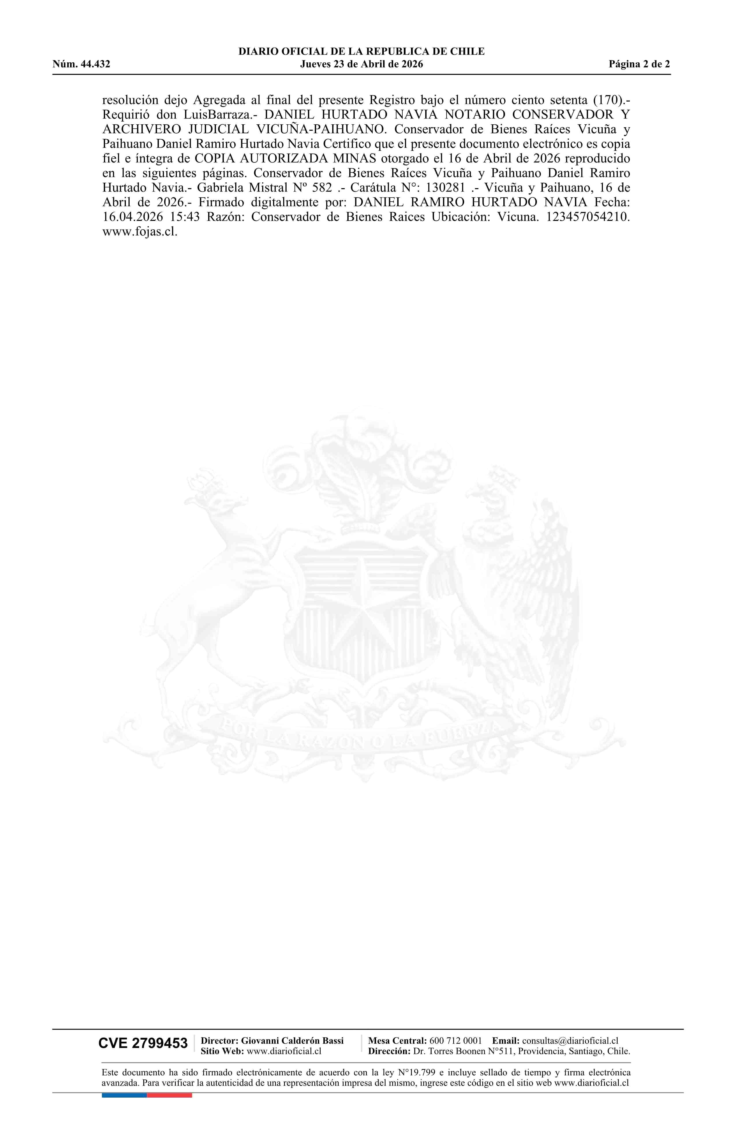 23-04-2026 DIARIO OFICIAL CHILE - BOLETÍN OFICIAL DE MINERÍA