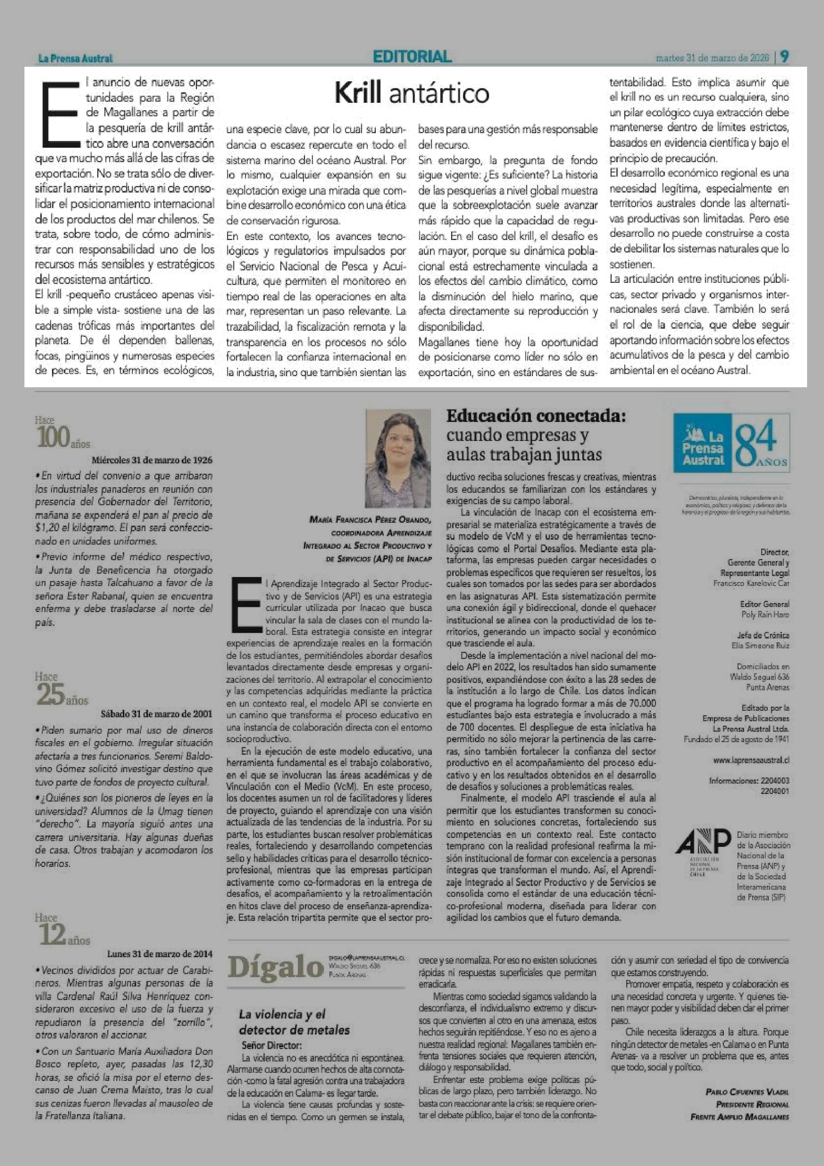 | Fecha: | 31-03-2026 | Sector: | Editorial | Región: | Región de Magallanes y de la Antártica Chilena |
