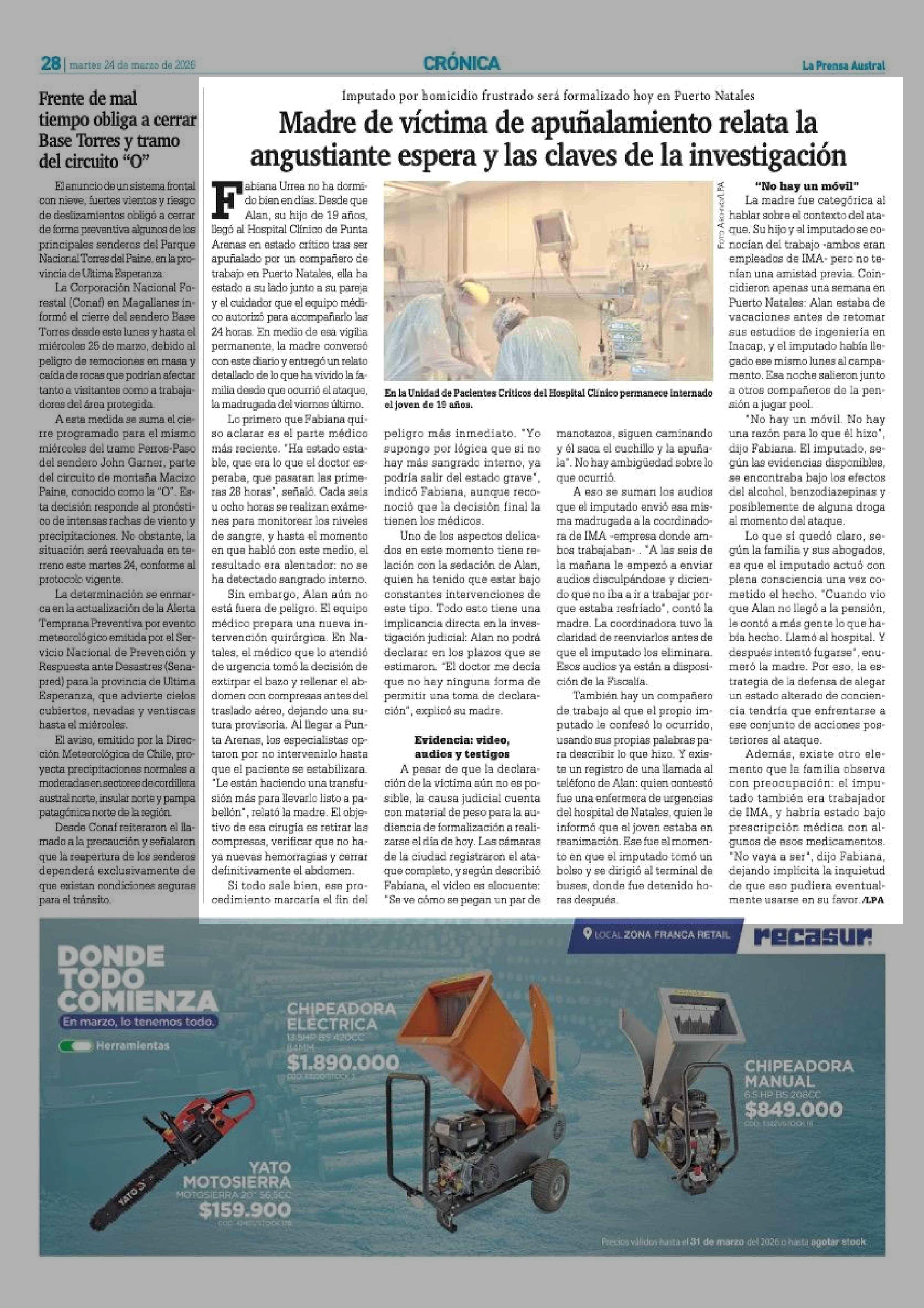 Madre de víctima de apuñalamiento relata la angustiante espera y las claves de la investigación 24-03-2026 La Prensa Austral |