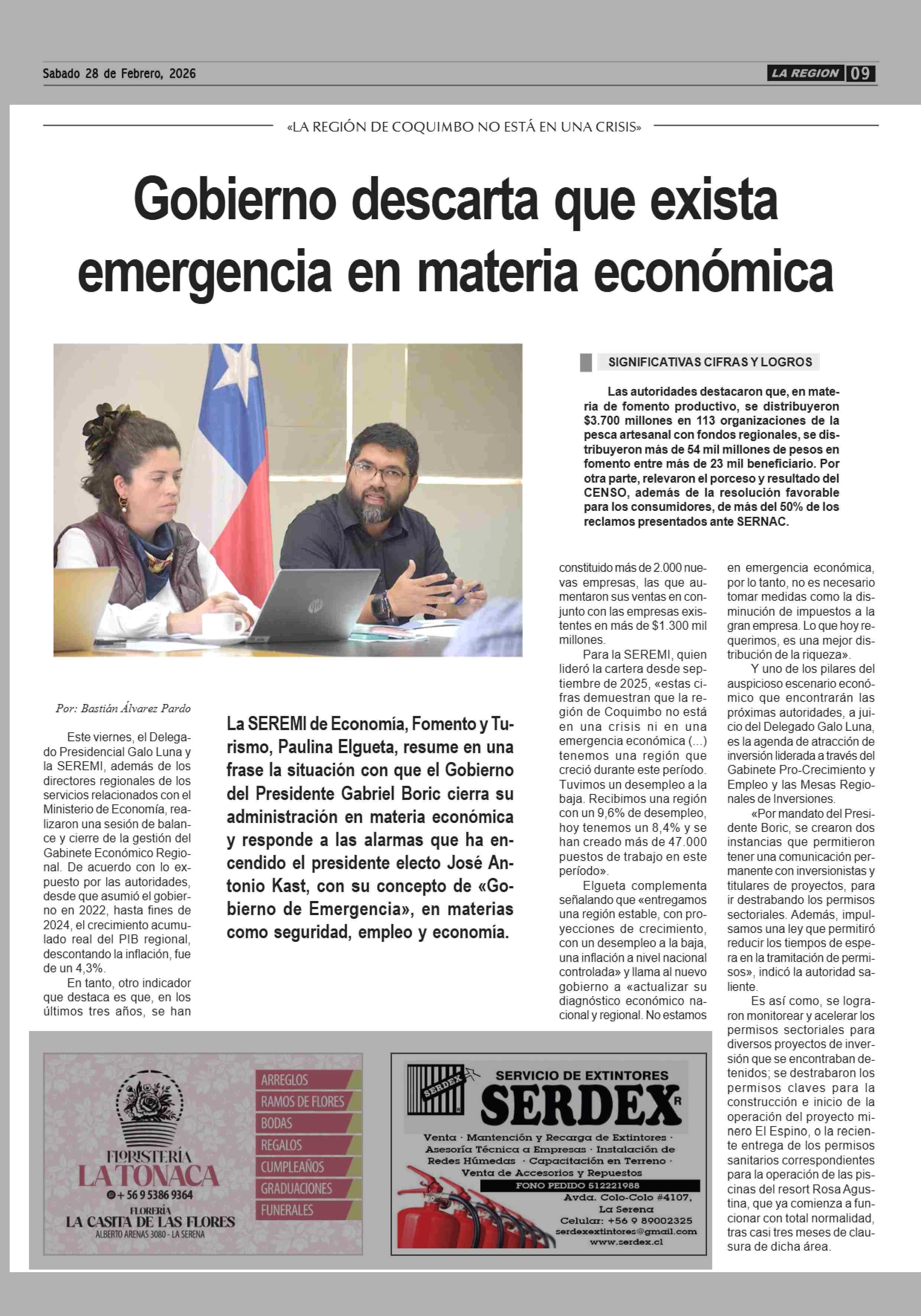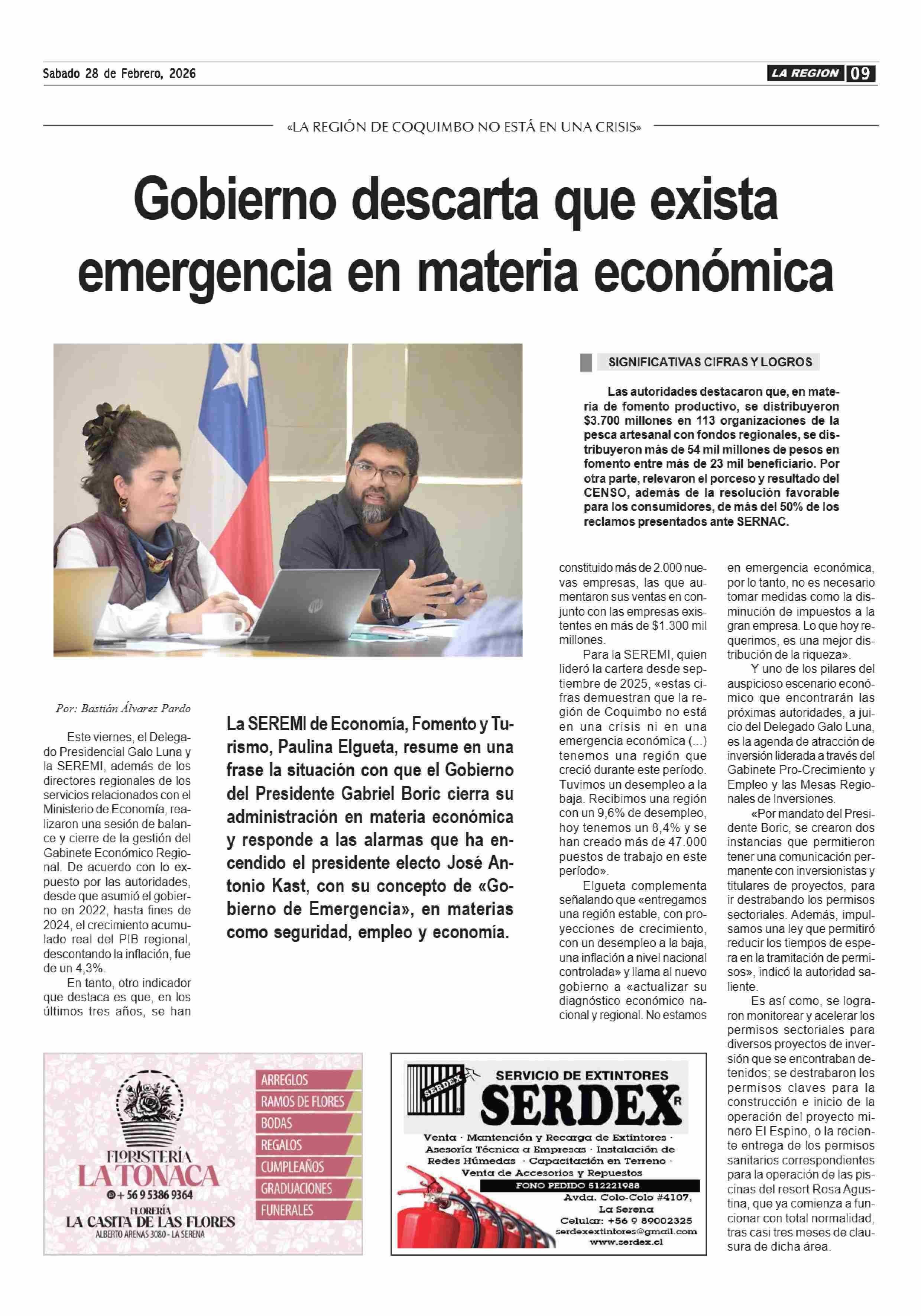 Gobierno descarta que exista emergencia en materia económica 28-02-2026 Diario la Región |