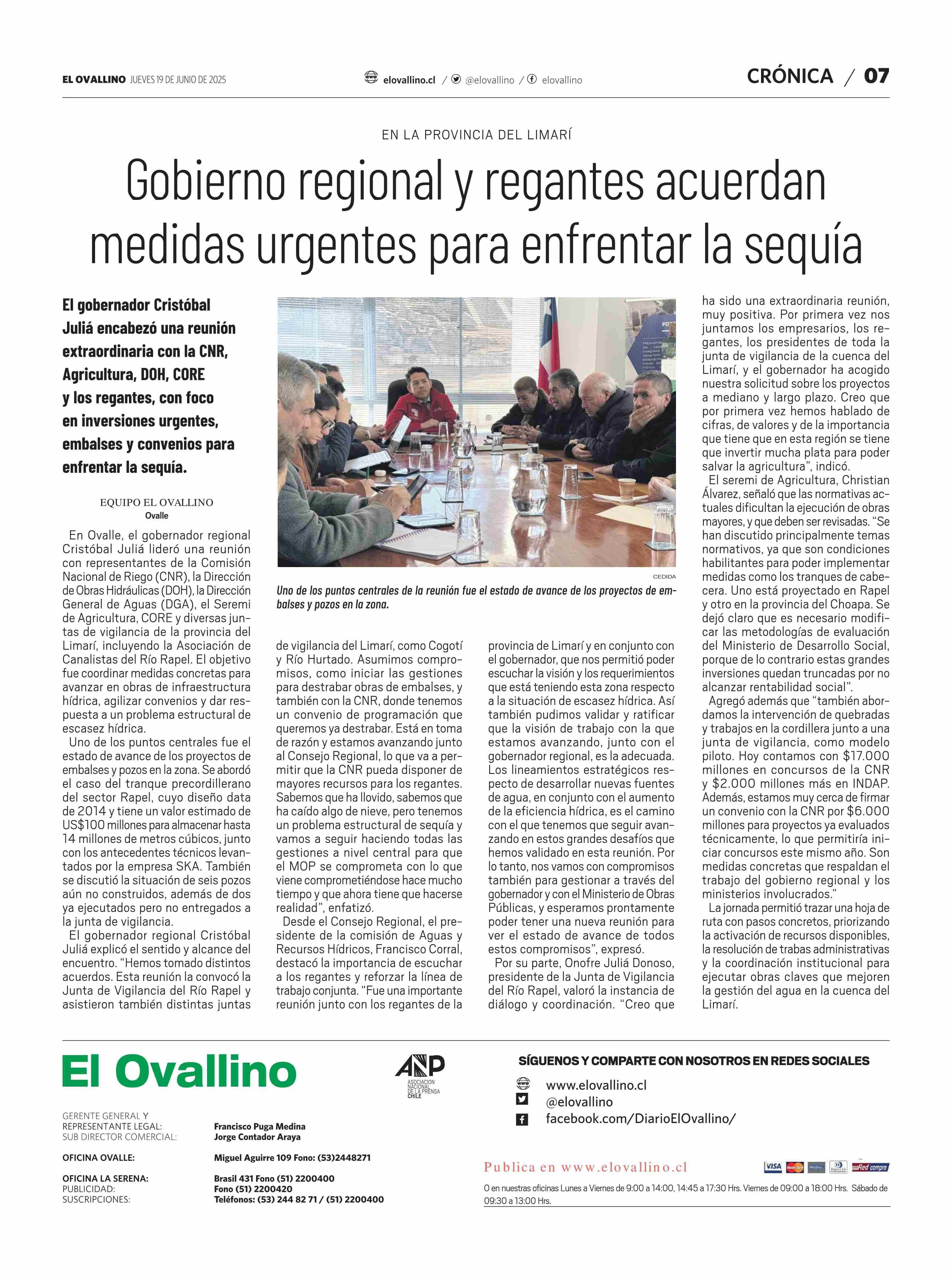 Gobierno regional y regantes acuerdan medidas urgentes para enfrentar la sequía 19-06-2025 El Ovallino |