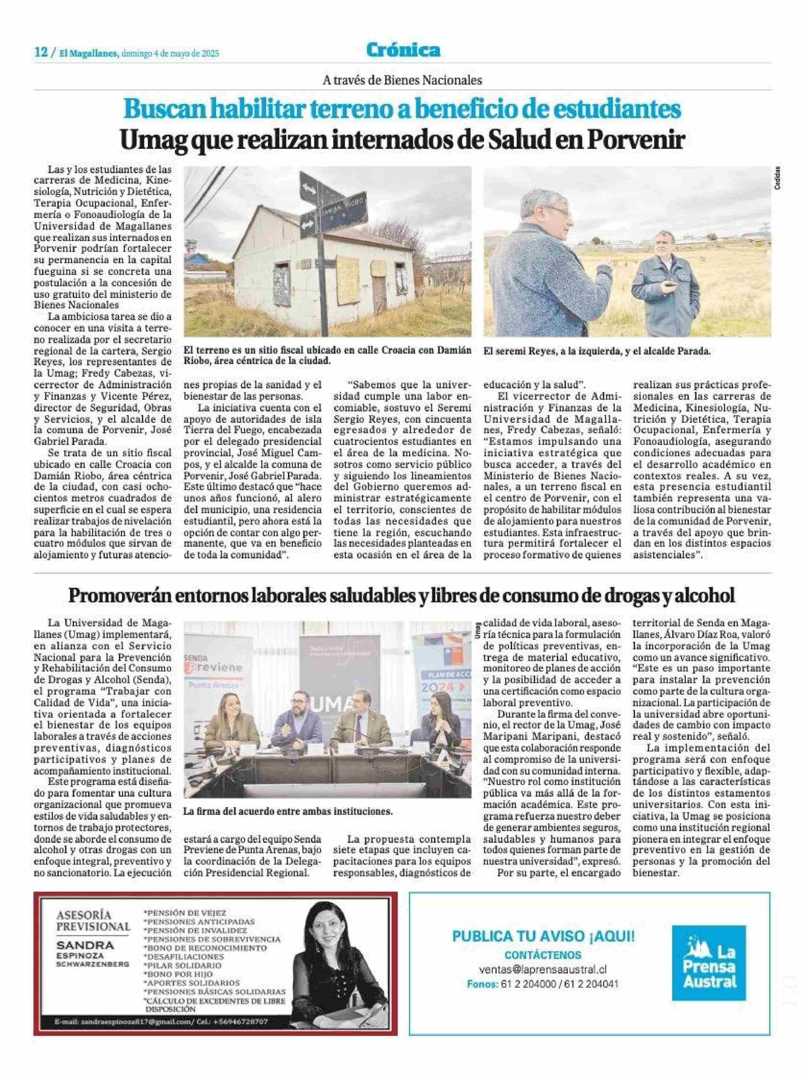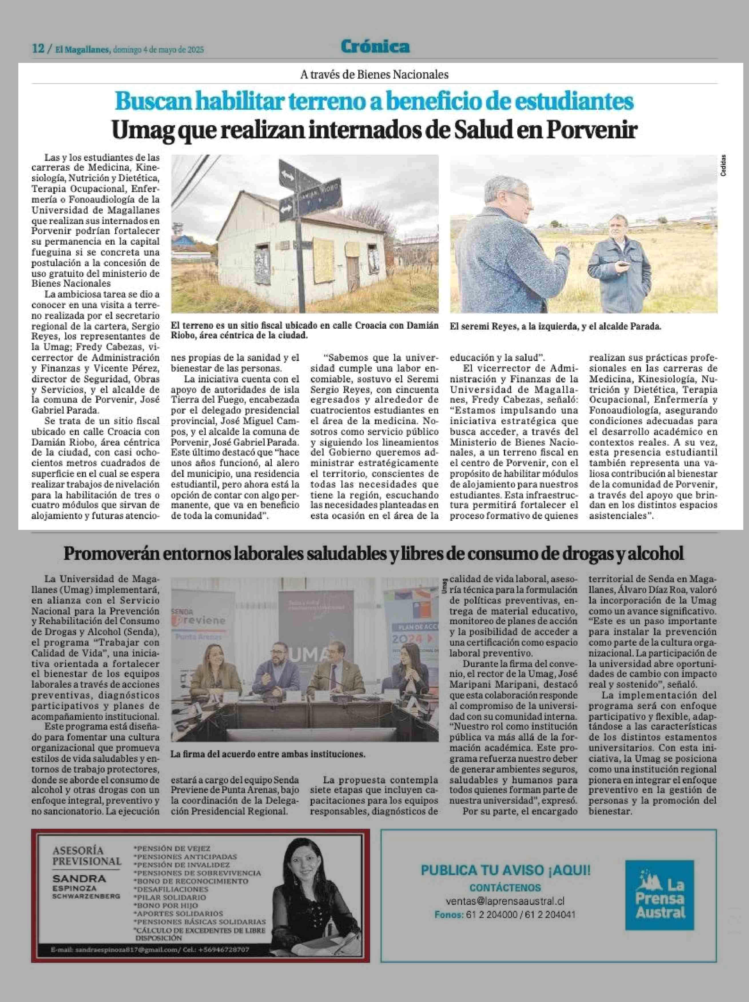 Buscan habilitar terreno a beneficio de estudiantes Umag que realizan internados de Salud en Porvenir 04-05-2025 El Magallanes |
