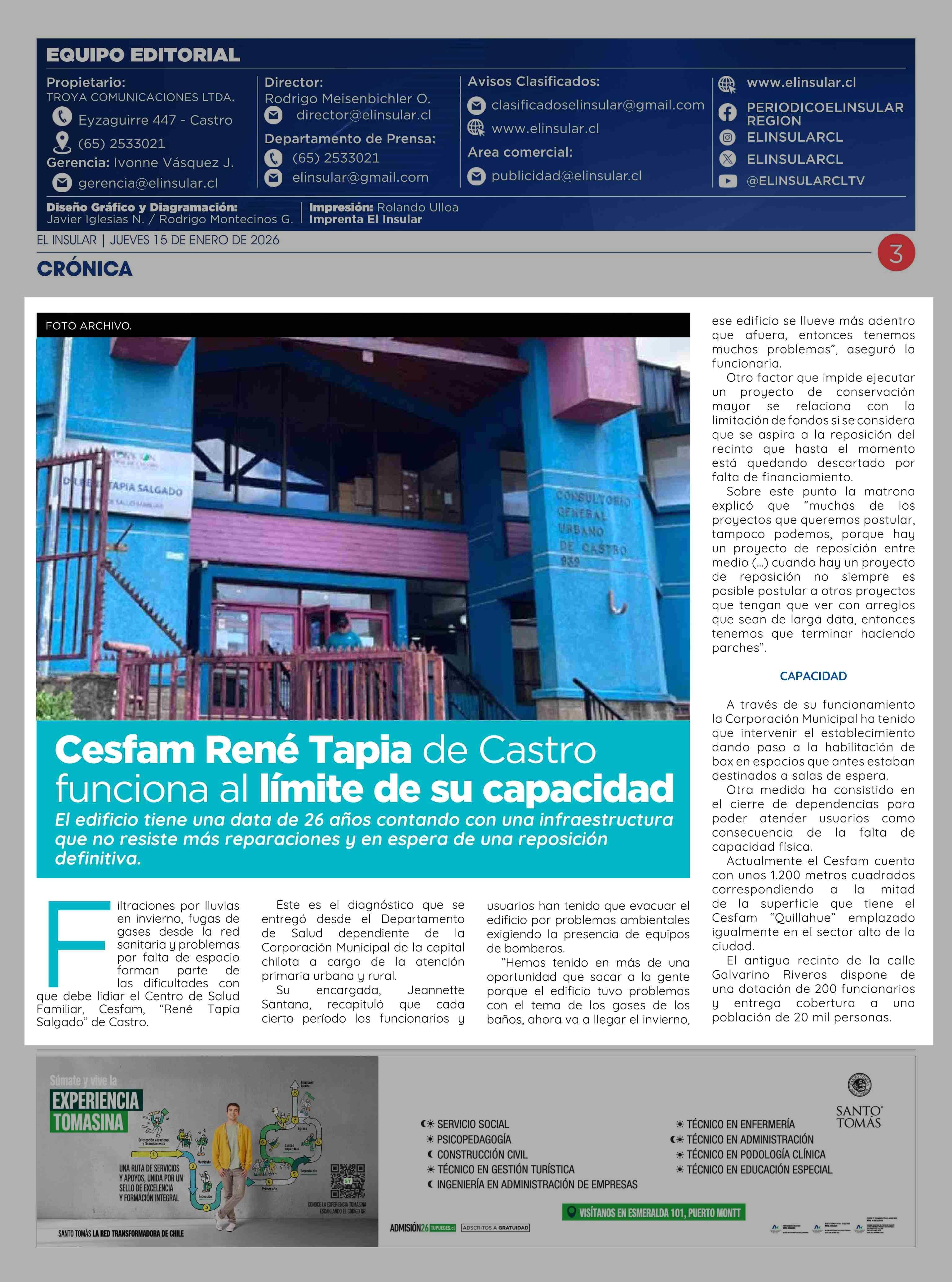 Cesfam René Tapia de Castro funciona al límite de su capacidad 15-01-2026 El Insular |