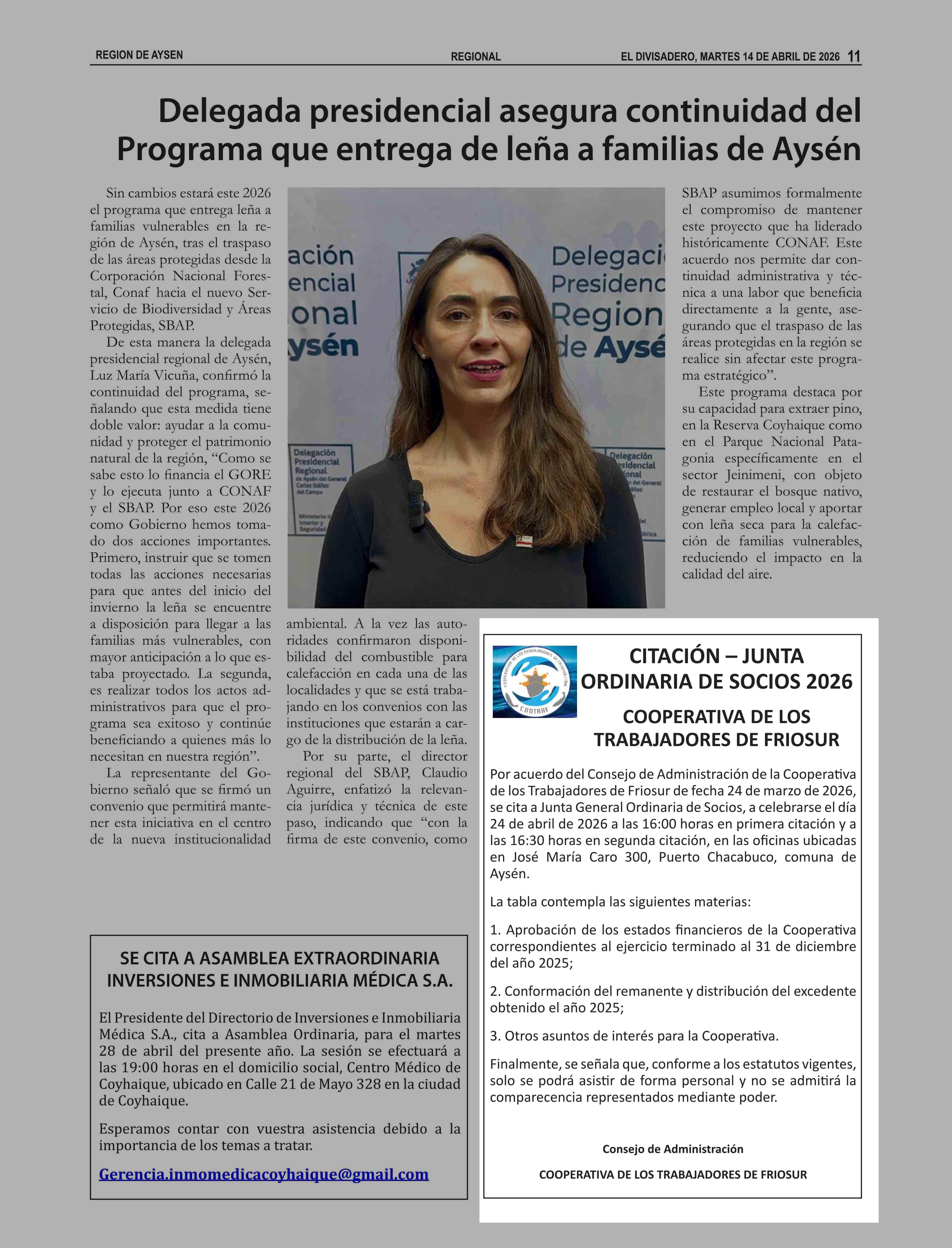 | Fecha: | 14-04-2026 | Sector: | Noticia general | Región: | Región Aysén del General Carlos Ibáñez del Campo |