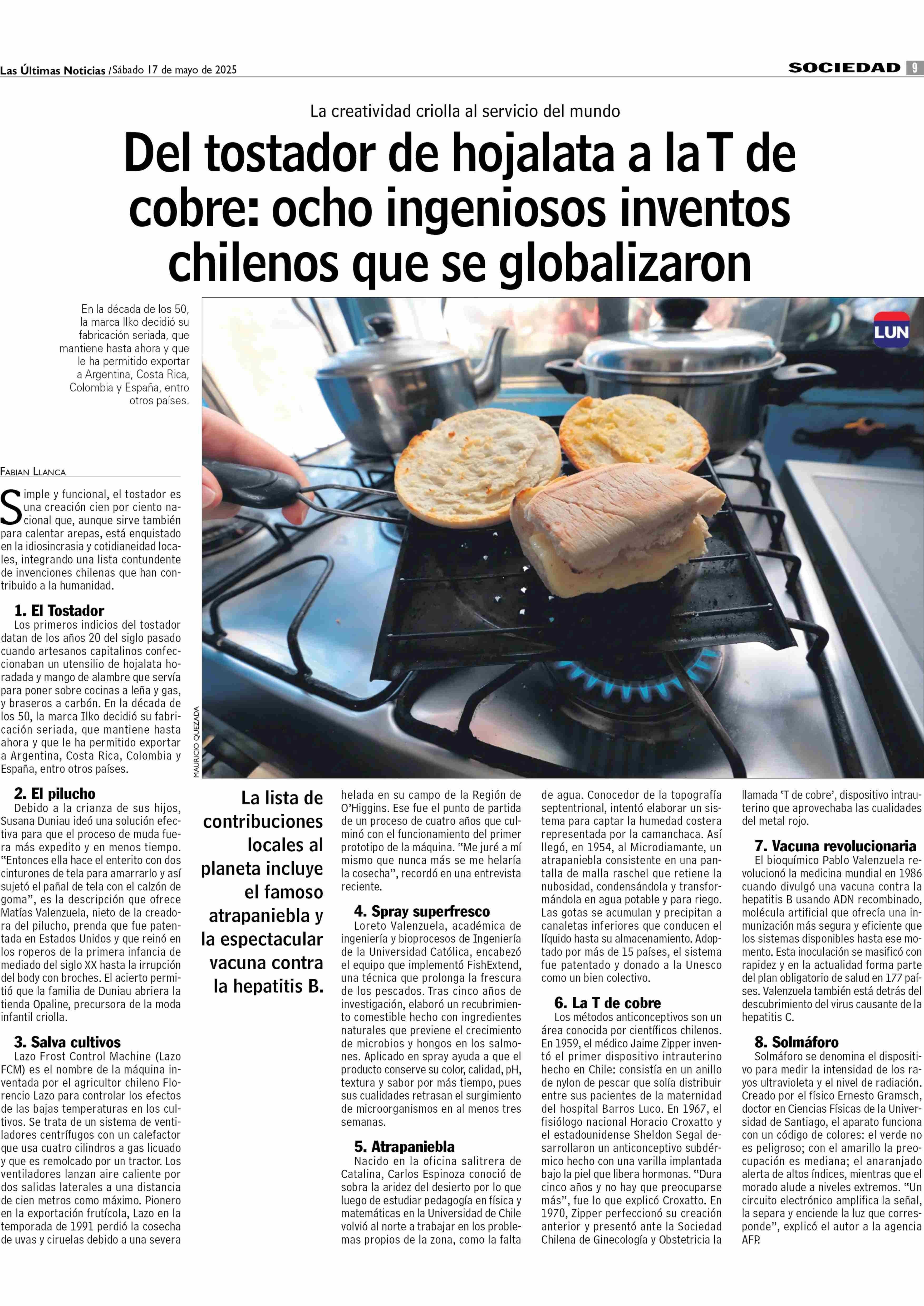 Del tostador de hojalata a laT de cobre: ocho ingeniosos inventos chilenos que se globalizaron 17-05-2025 Las Últimas Noticias |