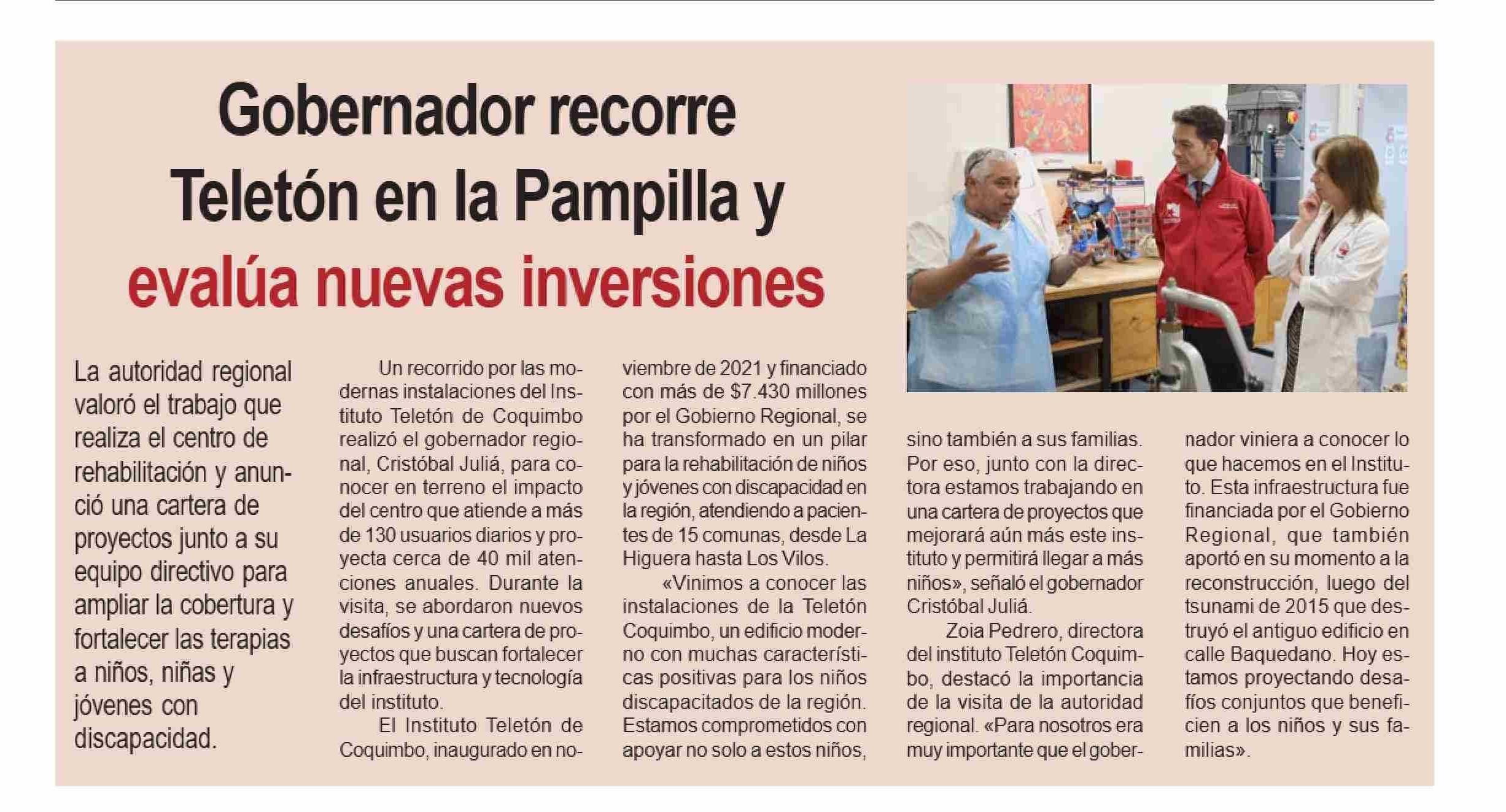 Gobernador recorre Teletón en la Pampilla y evalúa nuevas inversiones 03-05-2025 Diario la Región |