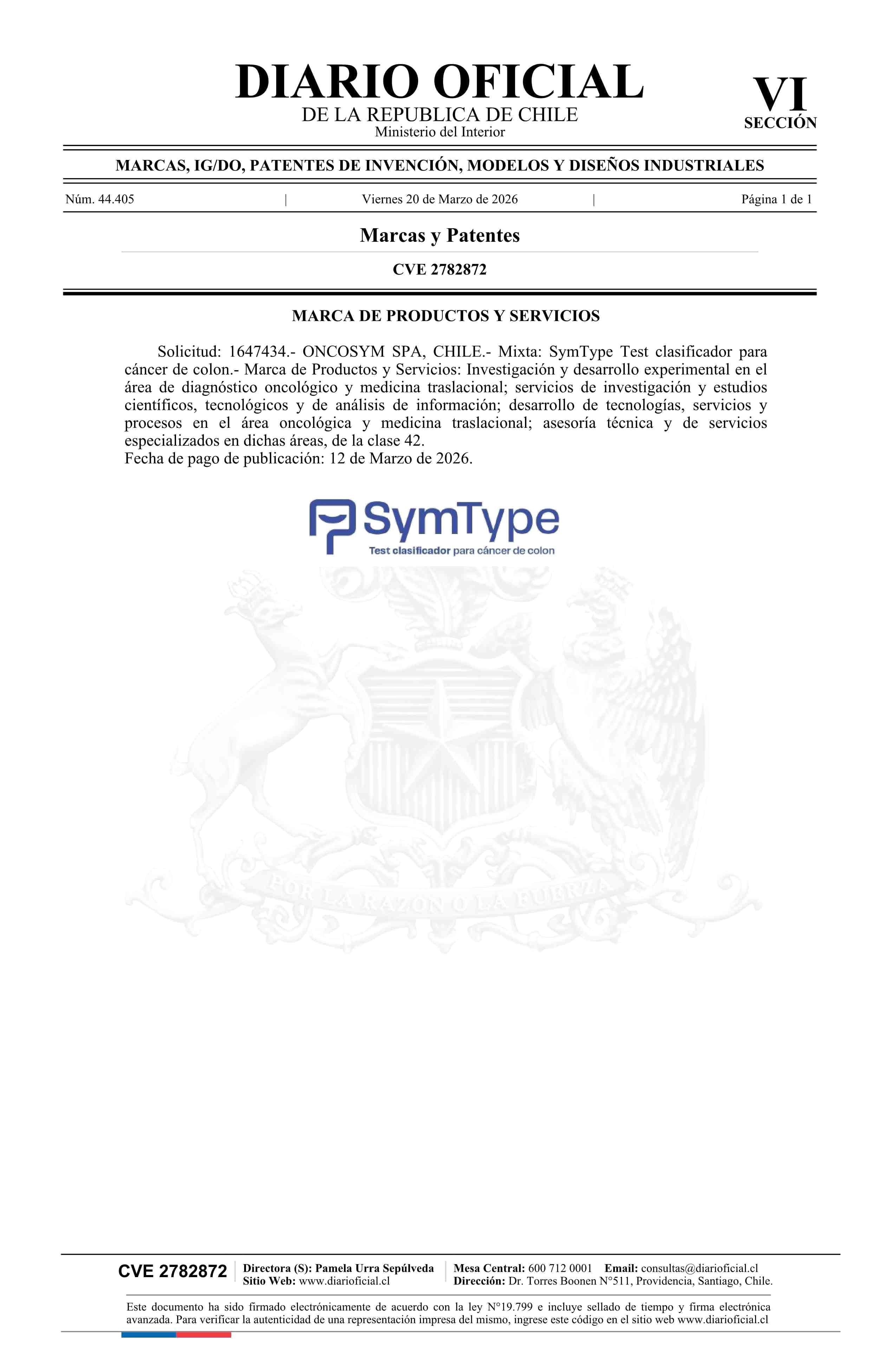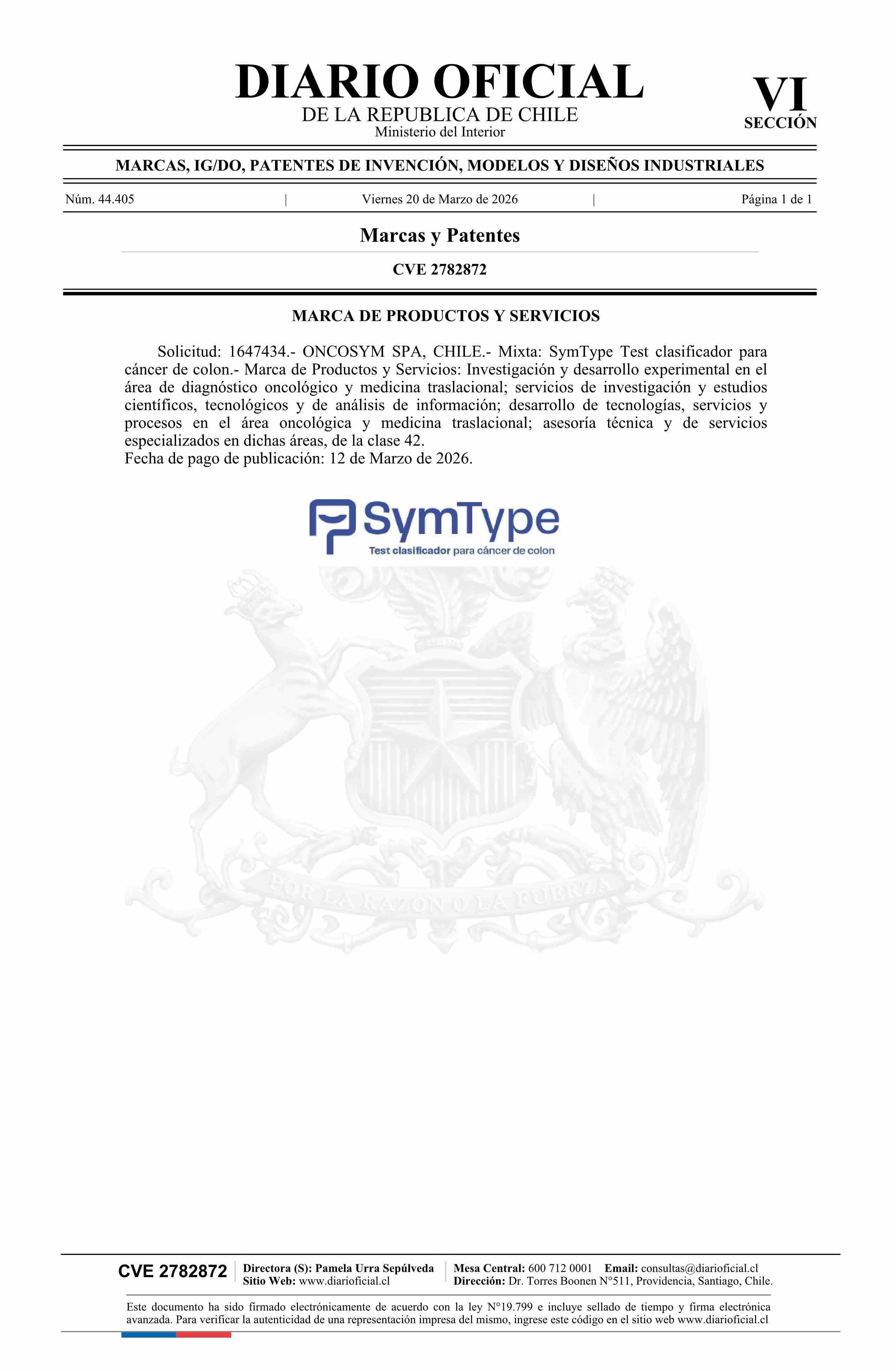 Título: Solicitud número 1647434.- SymType Test clasificador para cáncer de colon