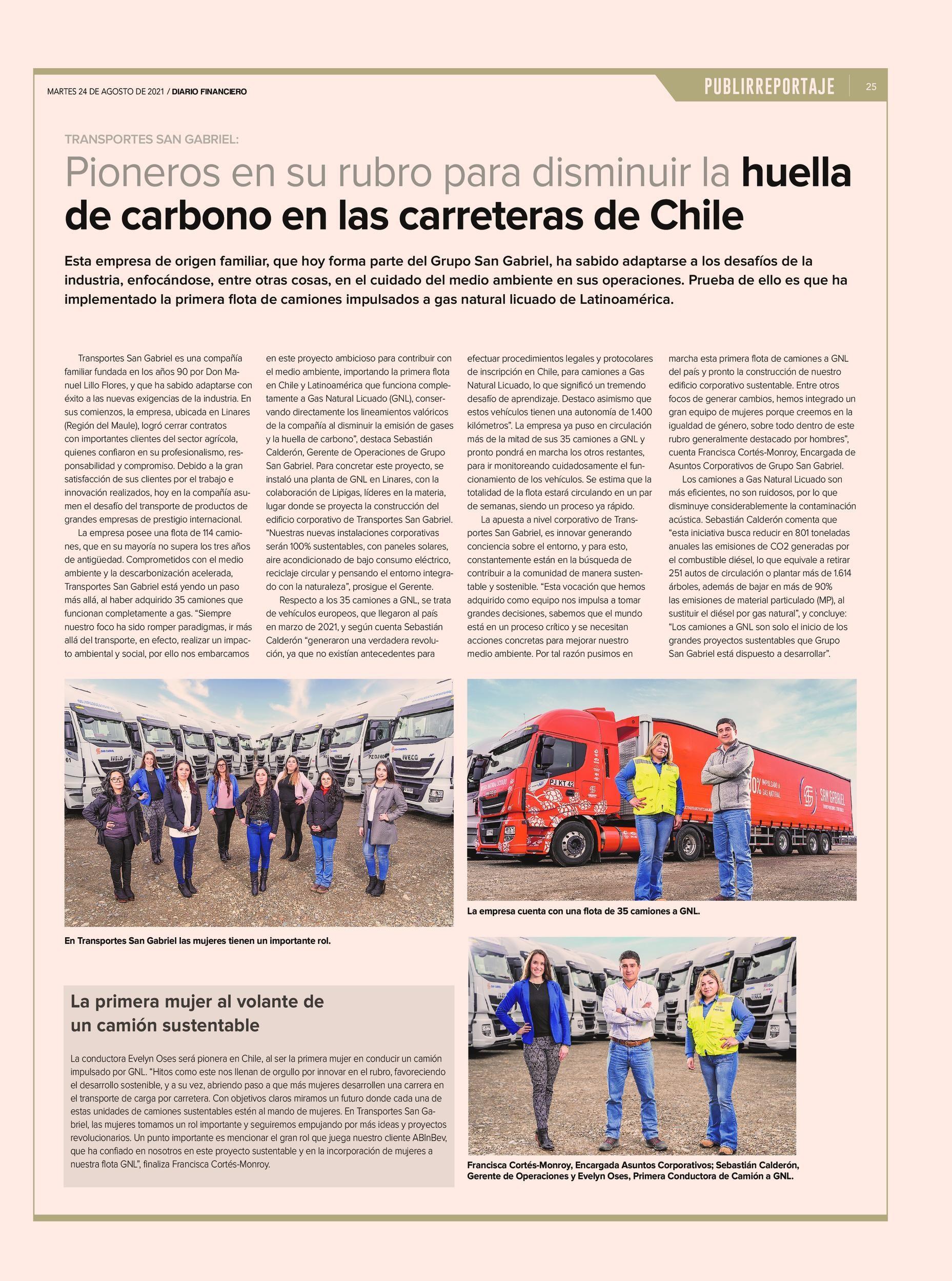 Pioneros en su rubro para disminuir la huella de carbono en las carreteras de Chile 24-08-2021 Diario Financiero |