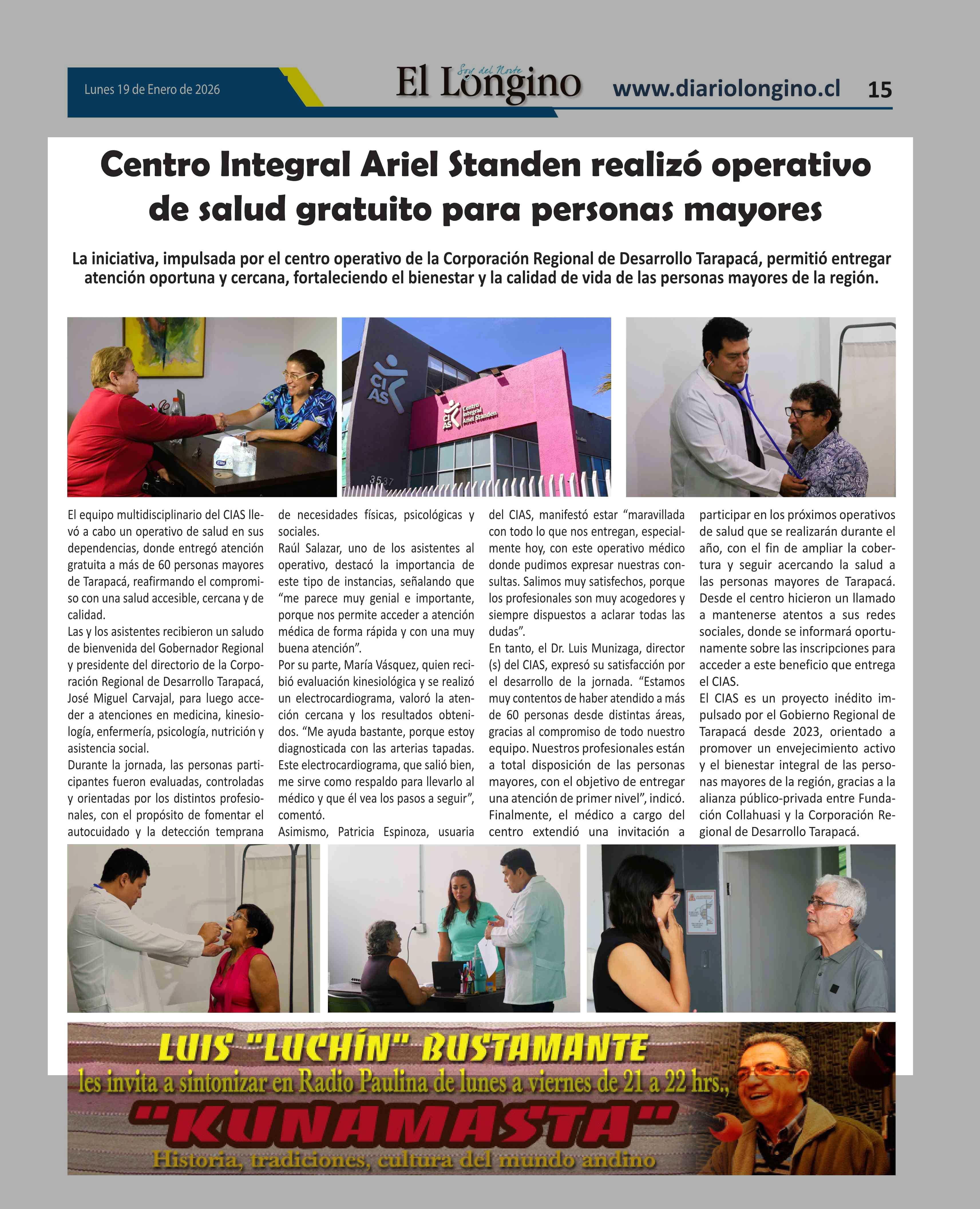 Fecha: 19-01-2026 Sector: Noticia general Región: Región de Tarapacá