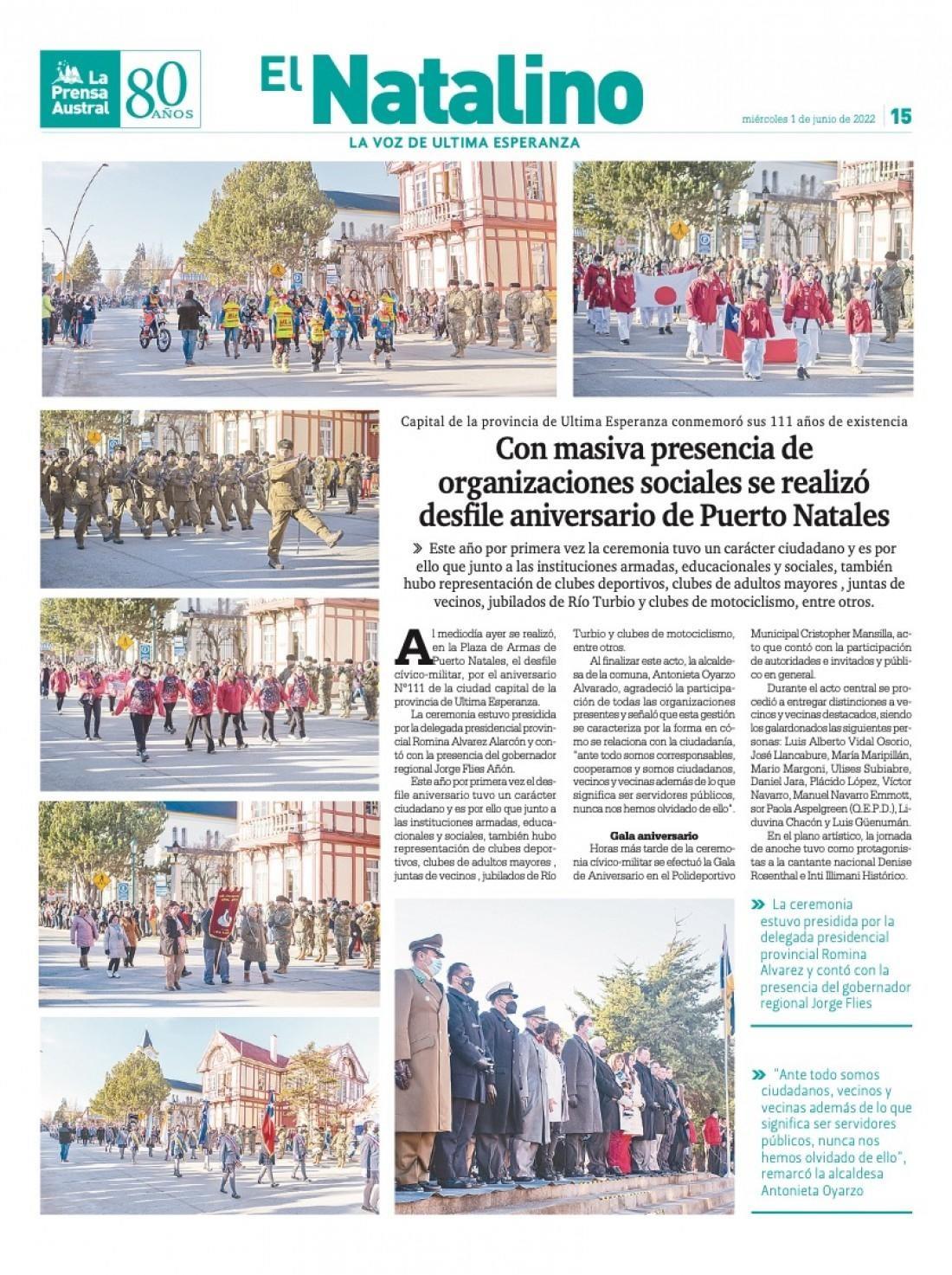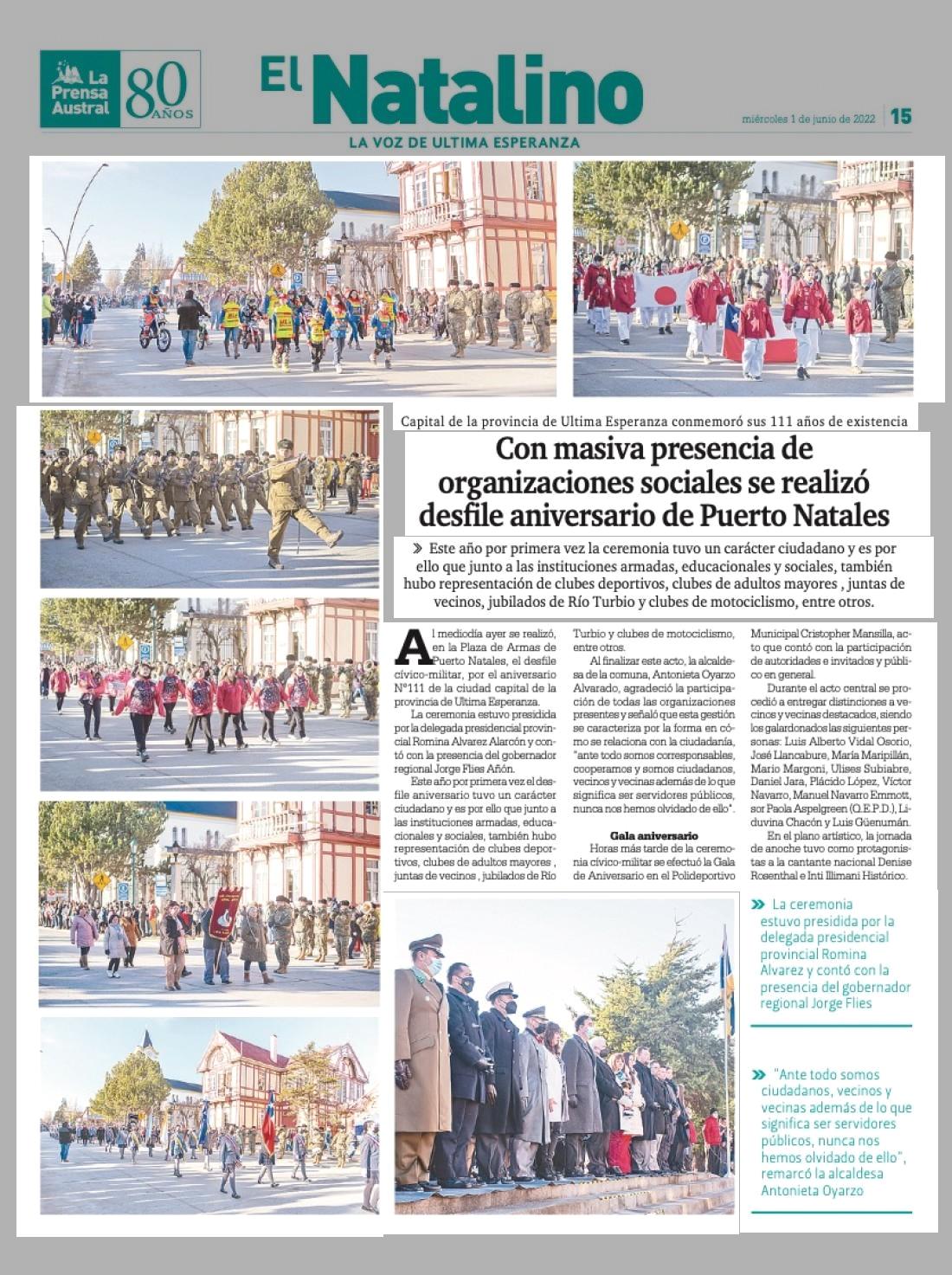 Con masiva presencia de organizaciones sociales se realizó desfile aniversario de Puerto Natales 02-06-2022 La Prensa Austral |
