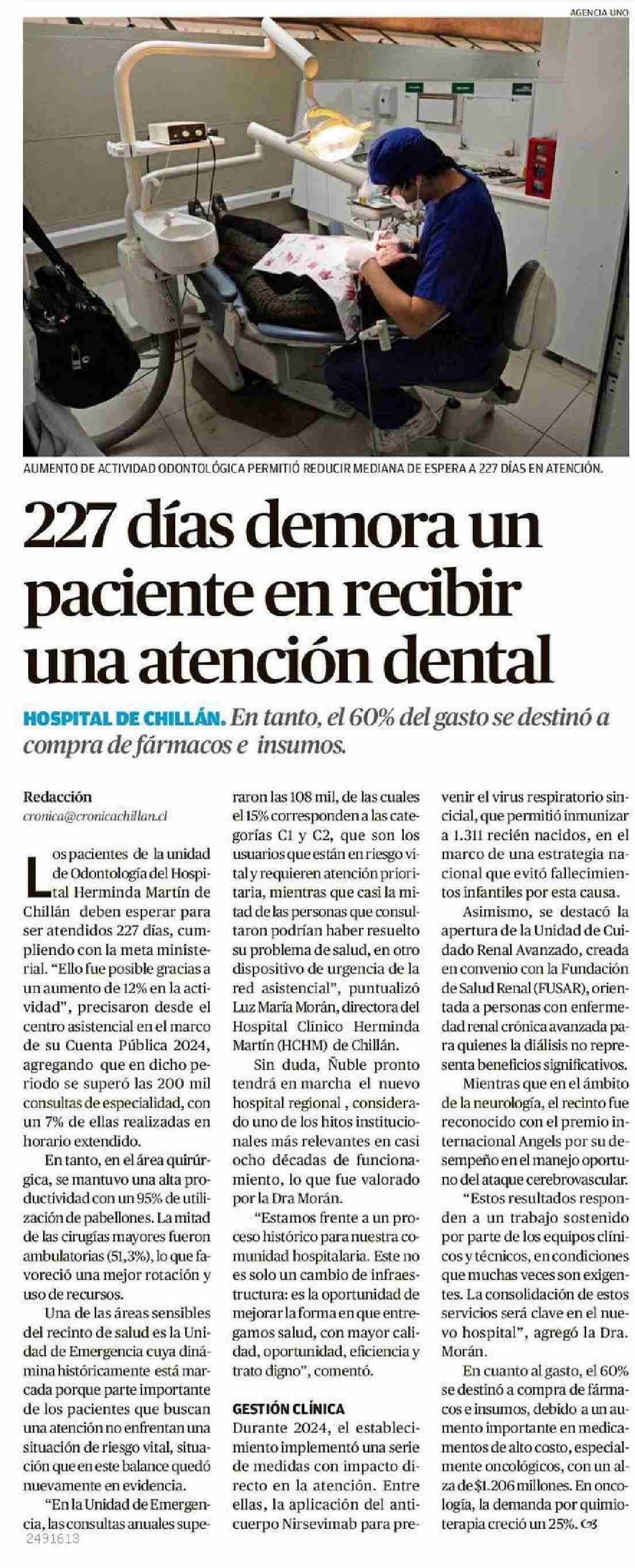 227 días demora un paciente en recibir una atención dental 13-06-2025 Crónica de Chillán |