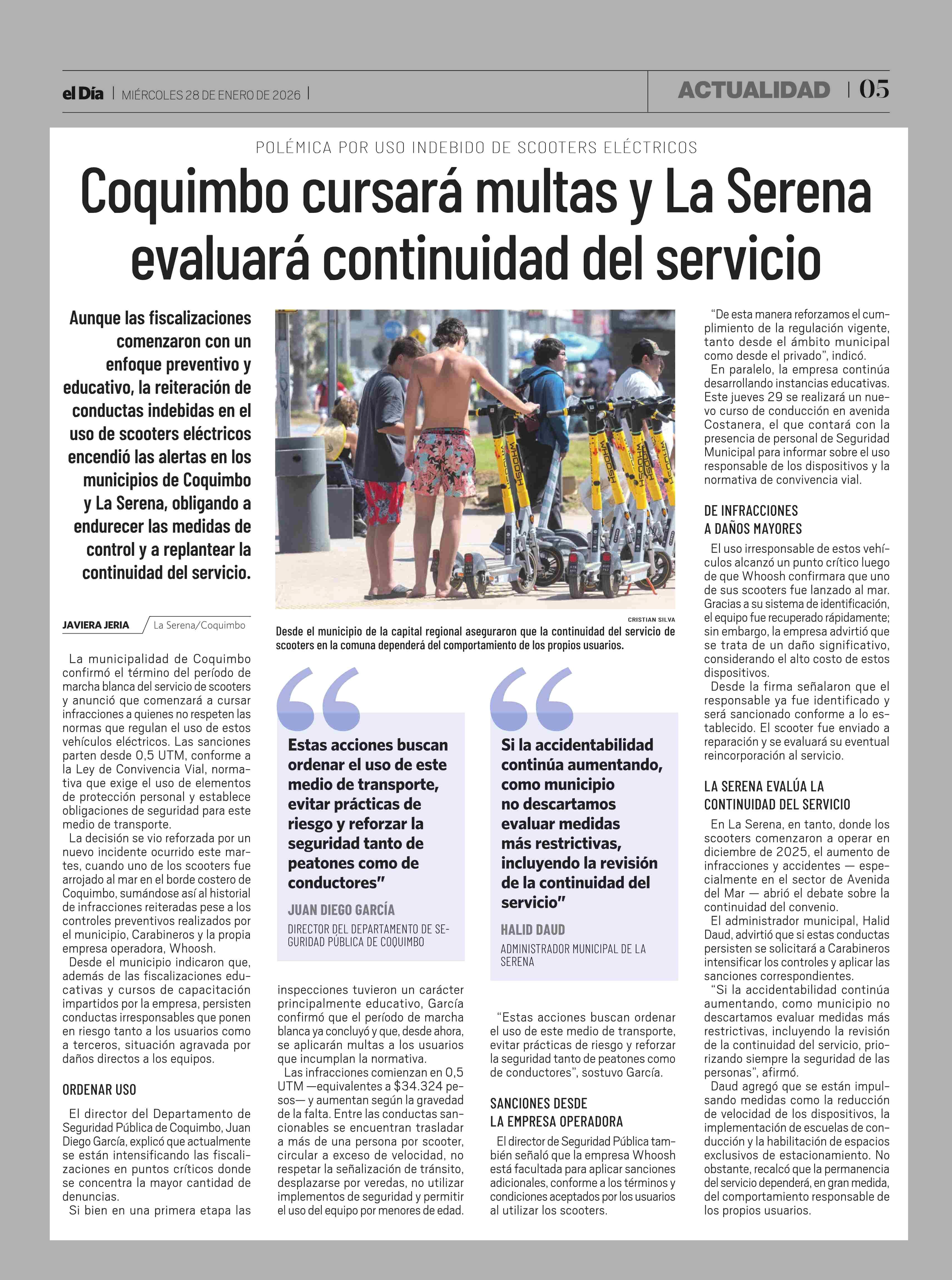 Coquimbo cursará multas y La Serena evaluará continuidad del servicio 28-01-2026 El Día |