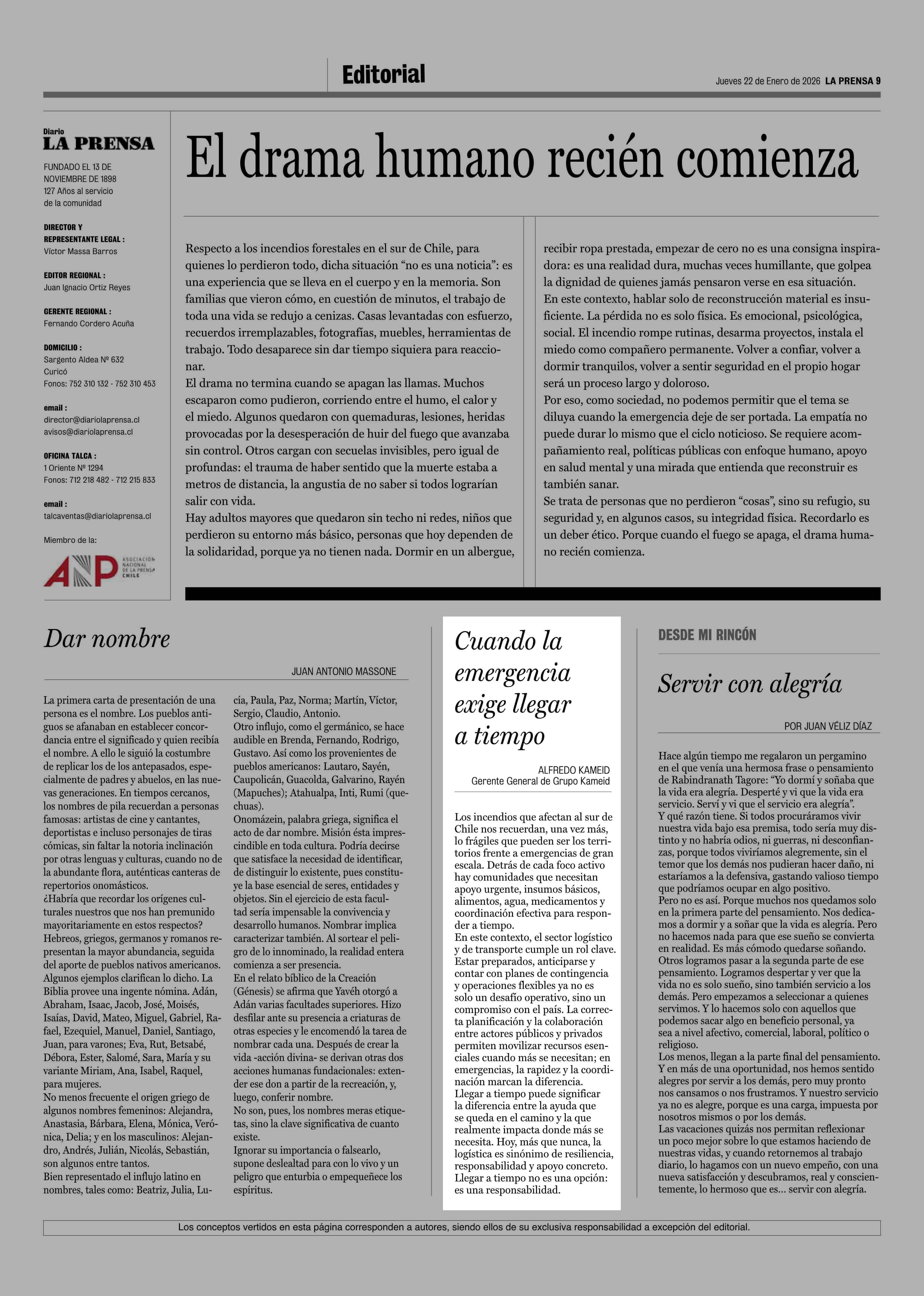 Cartas: Cuando la emergencia exige llegar a tiempo 22-01-2026 La Prensa de Curicó |