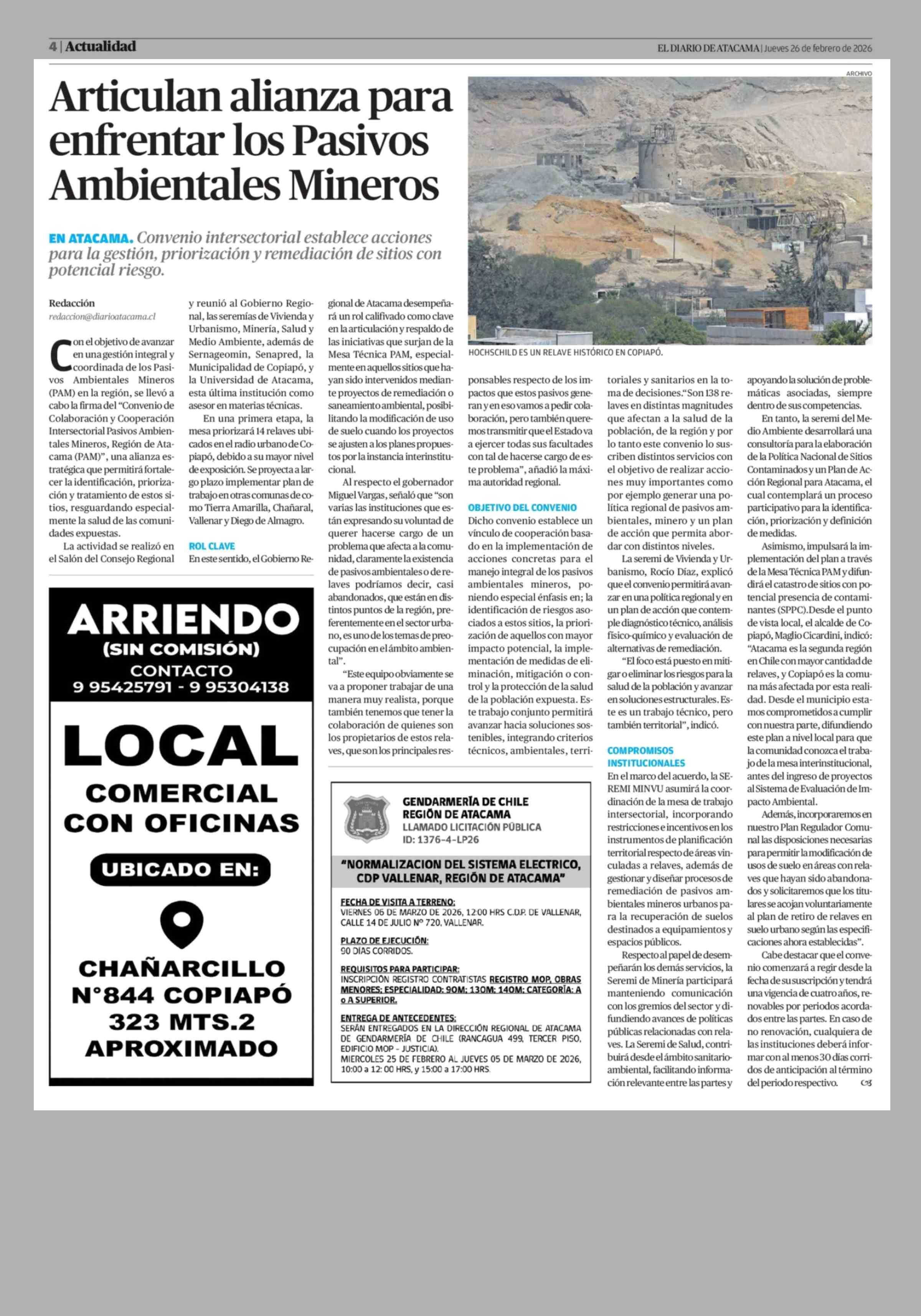 Fecha: 26-02-2026 Sector: Noticia general Región: Región de Atacama