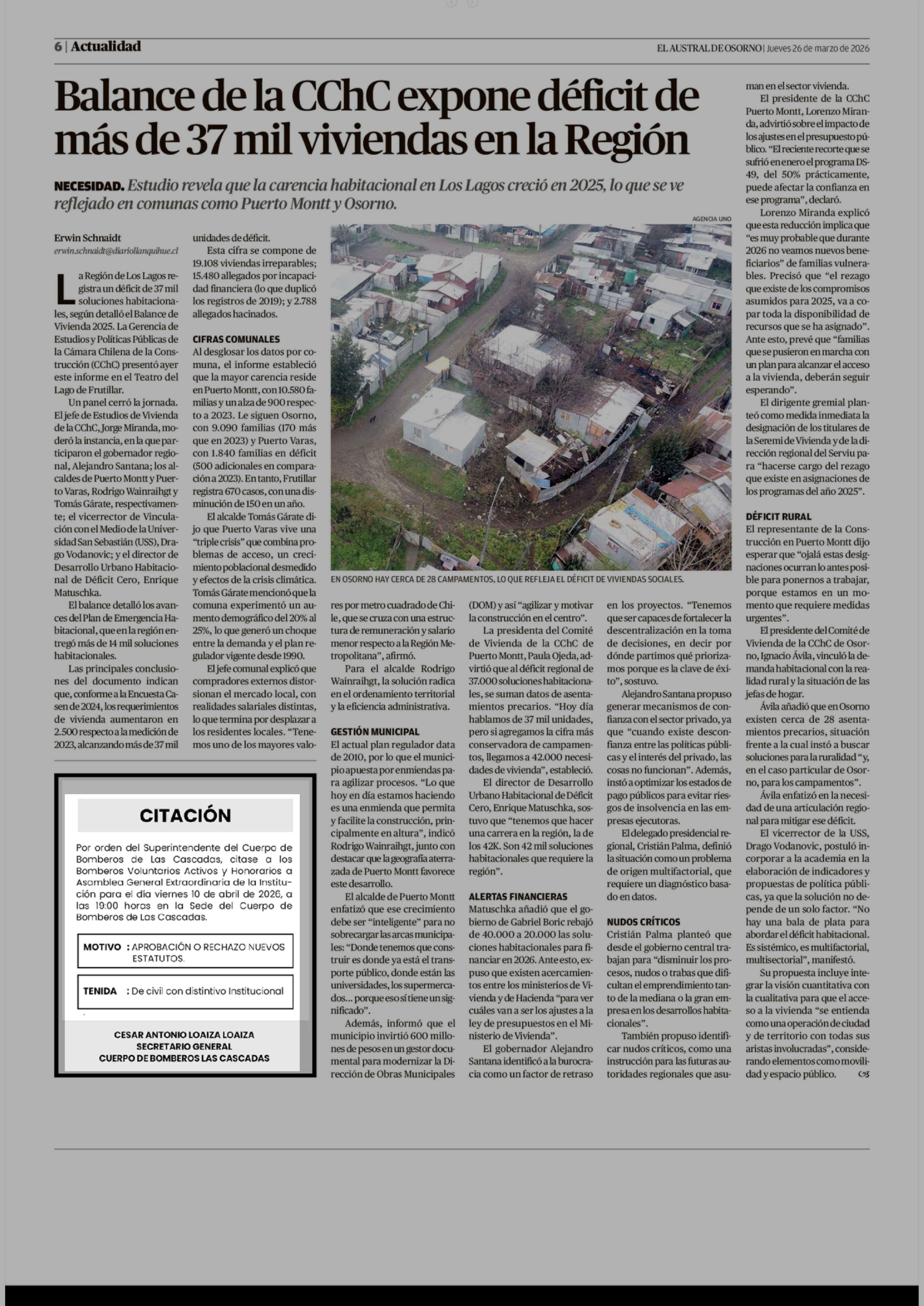 Extractos: CITACIÓN 26-03-2026 El Austral de Osorno |