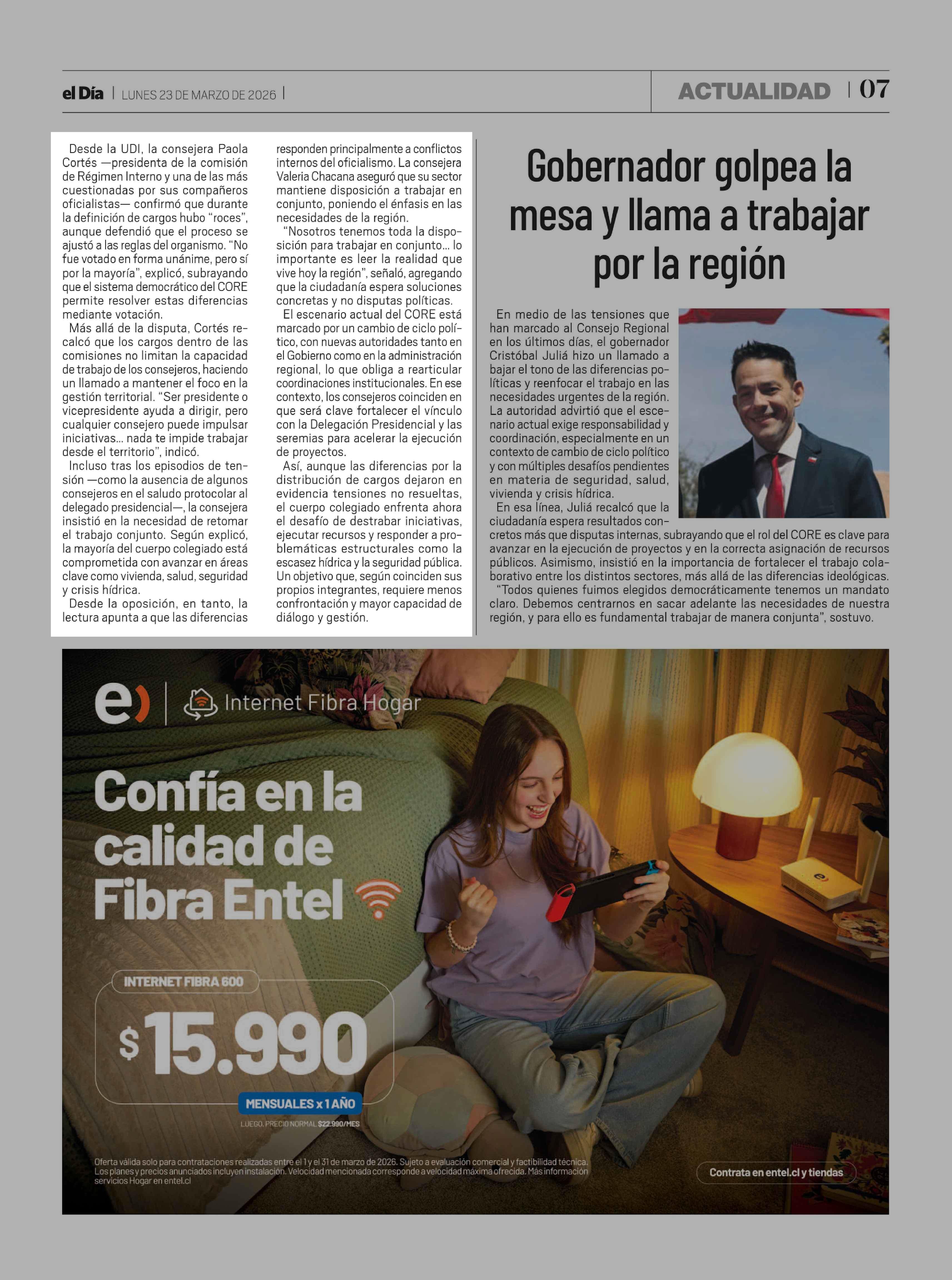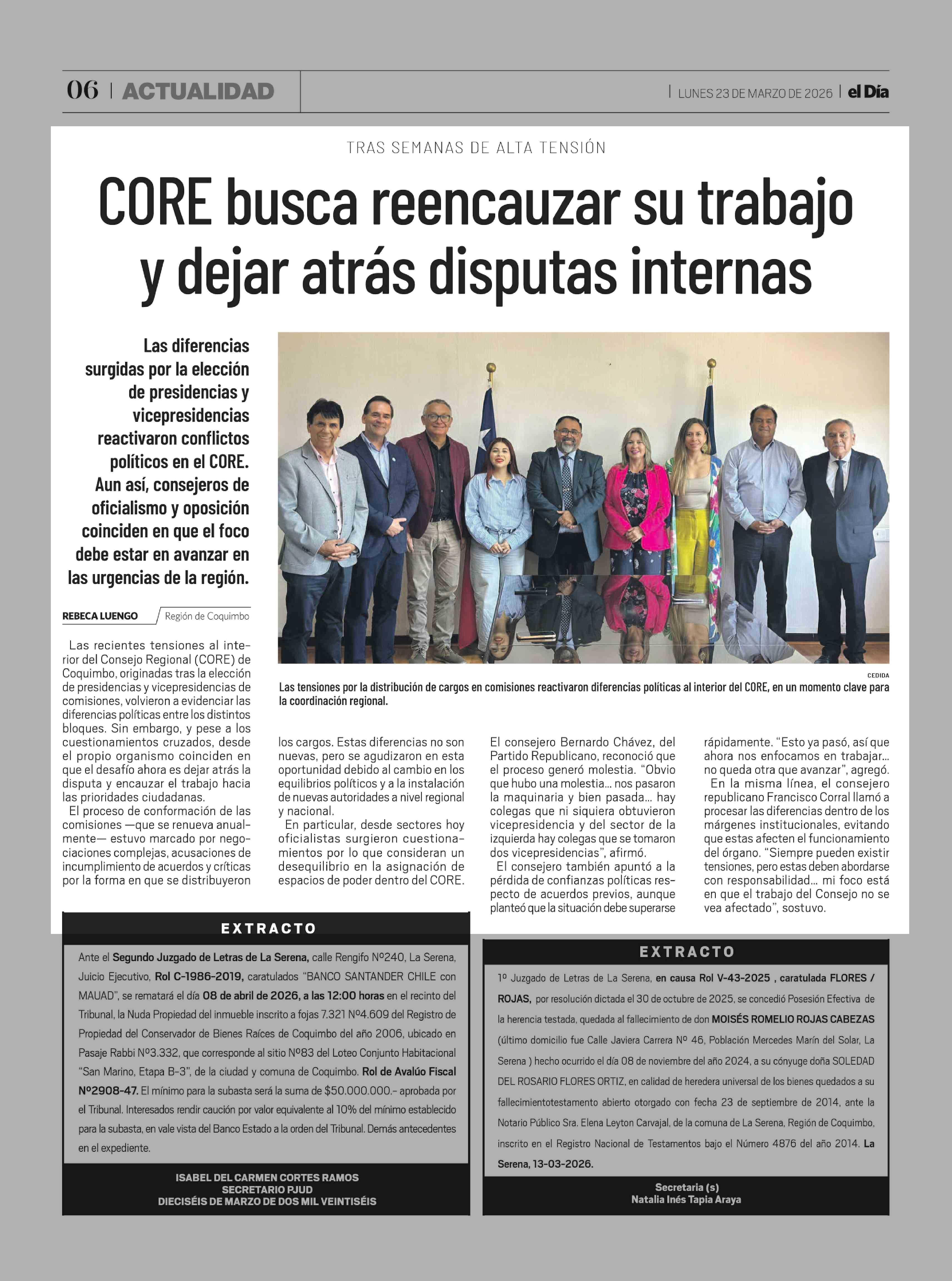 CORE busca reencauzar su trabajo y dejar atrás disputas internas 23-03-2026 El Día |