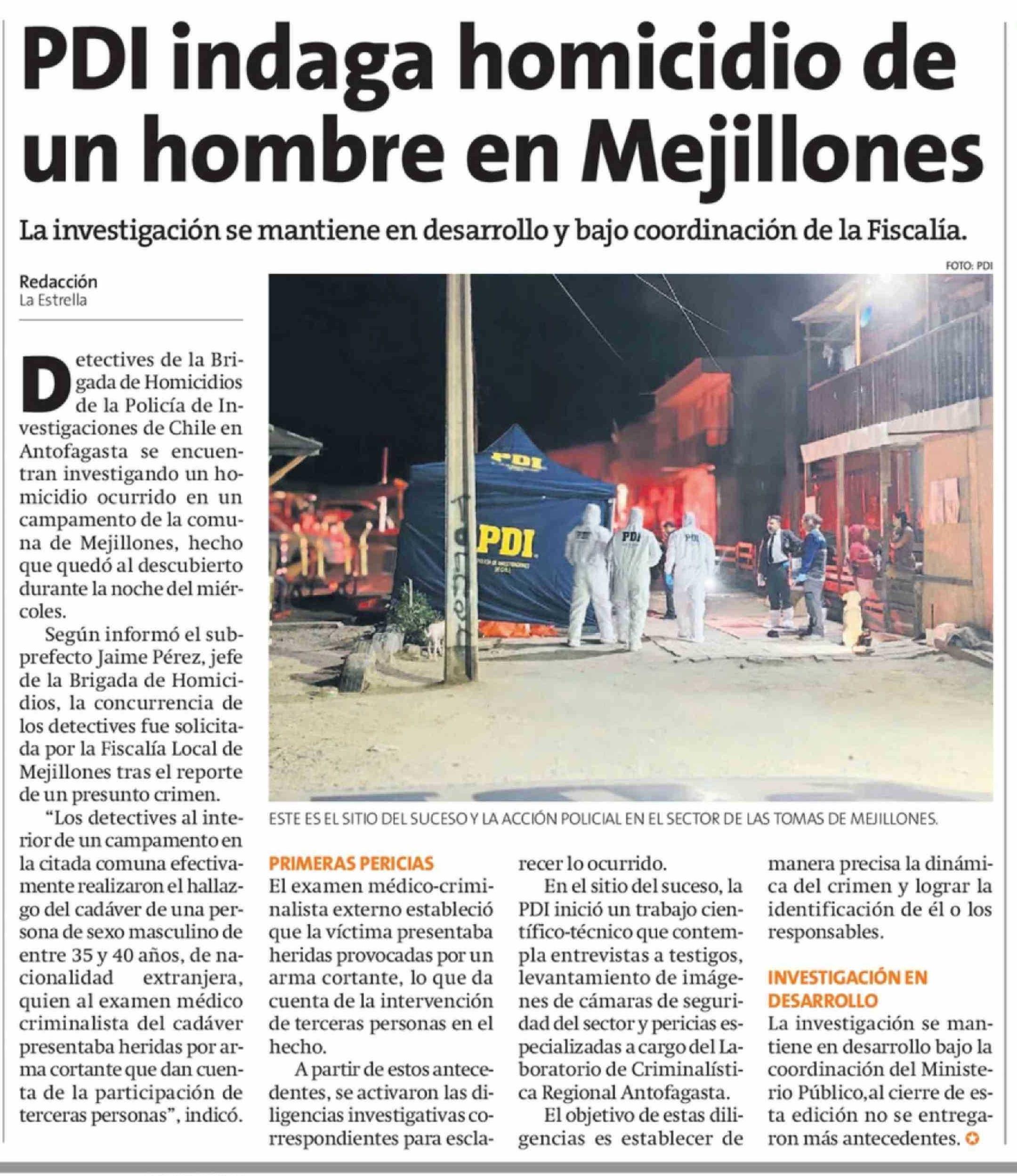 PDI indaga homicidio de un hombre en Mejillones 21-03-2026 La Estrella de Antofagasta |