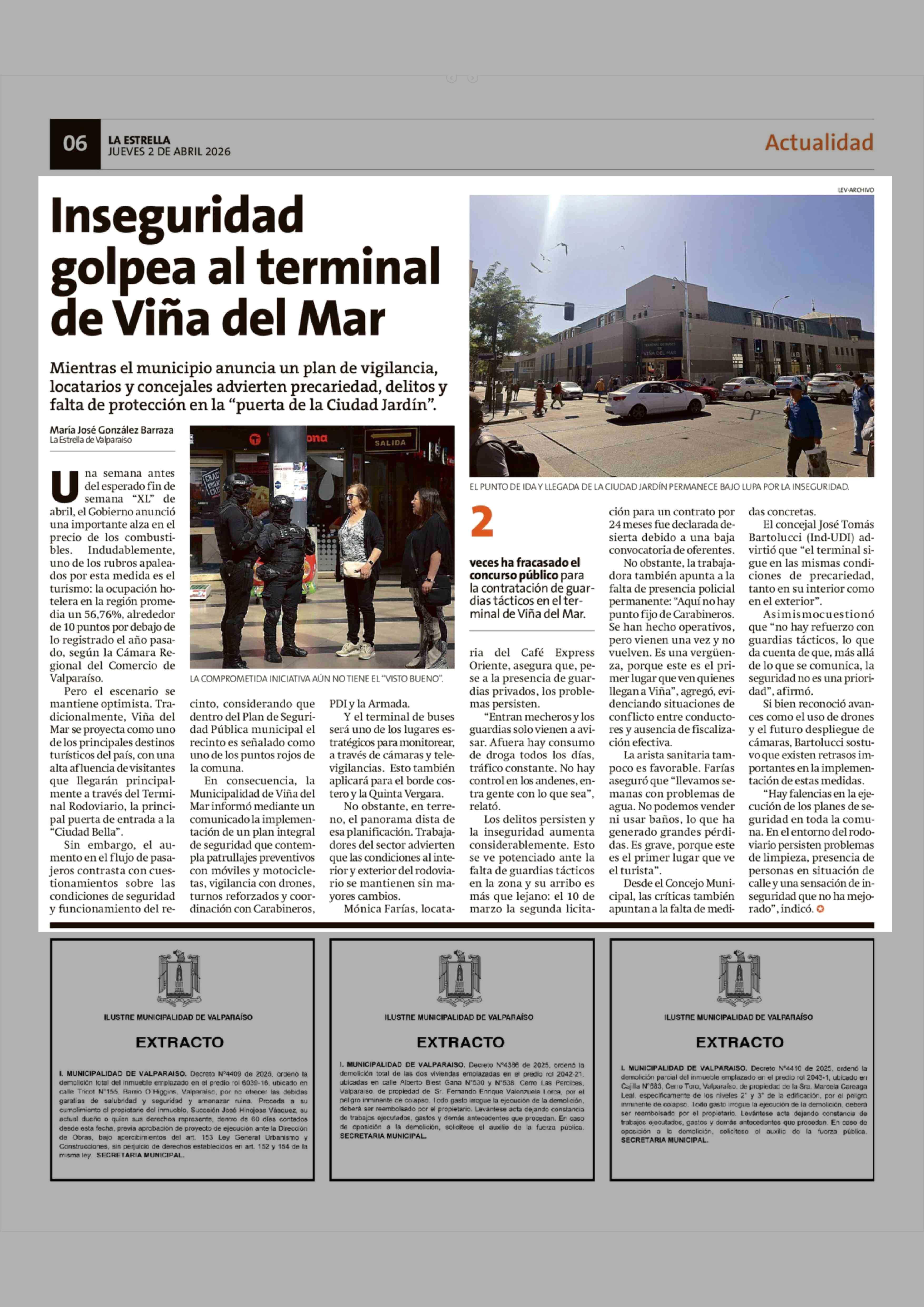 Inseguridad golpea al terminal de Viña del Mar 02-04-2026 La Estrella de Valparaíso |