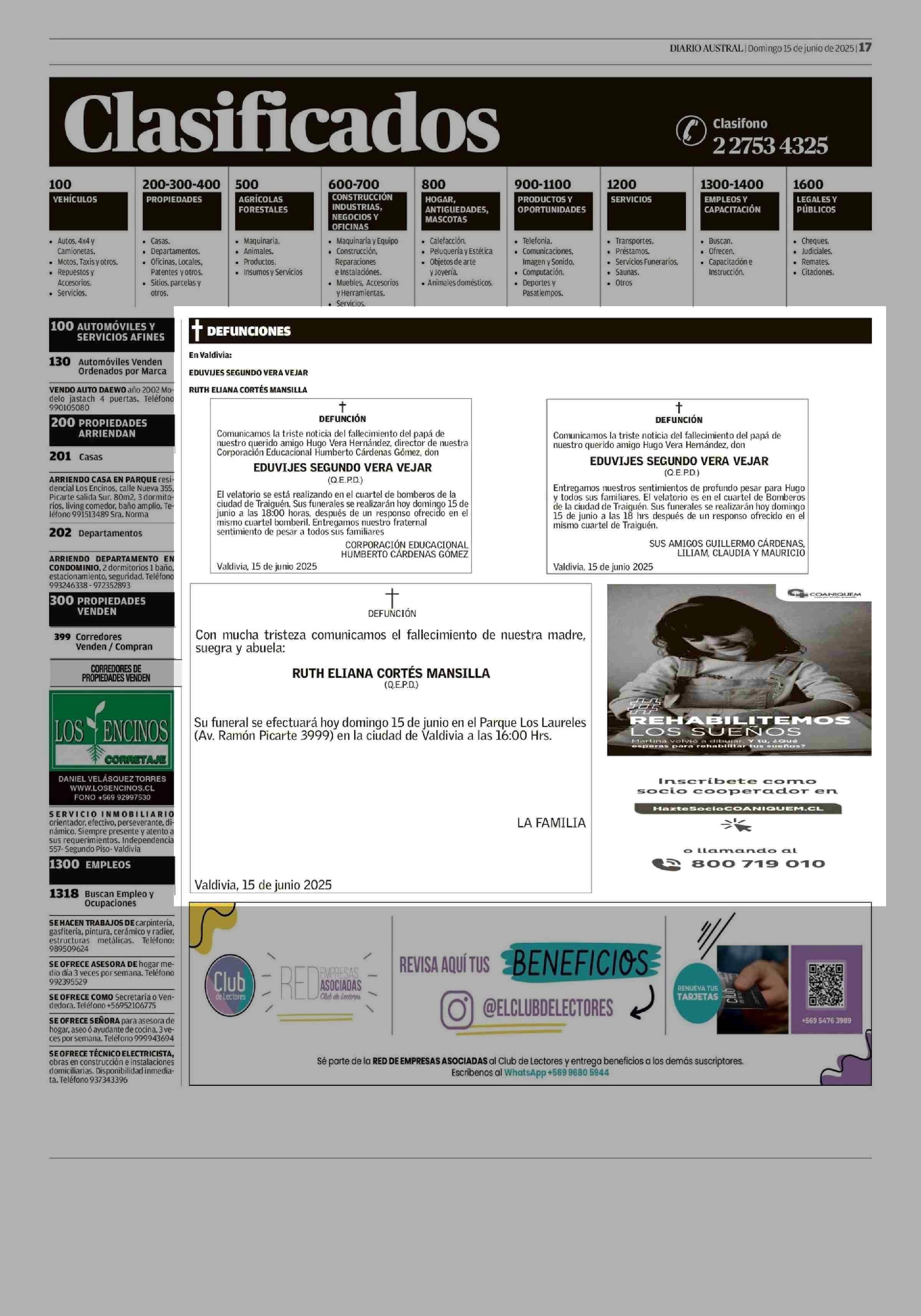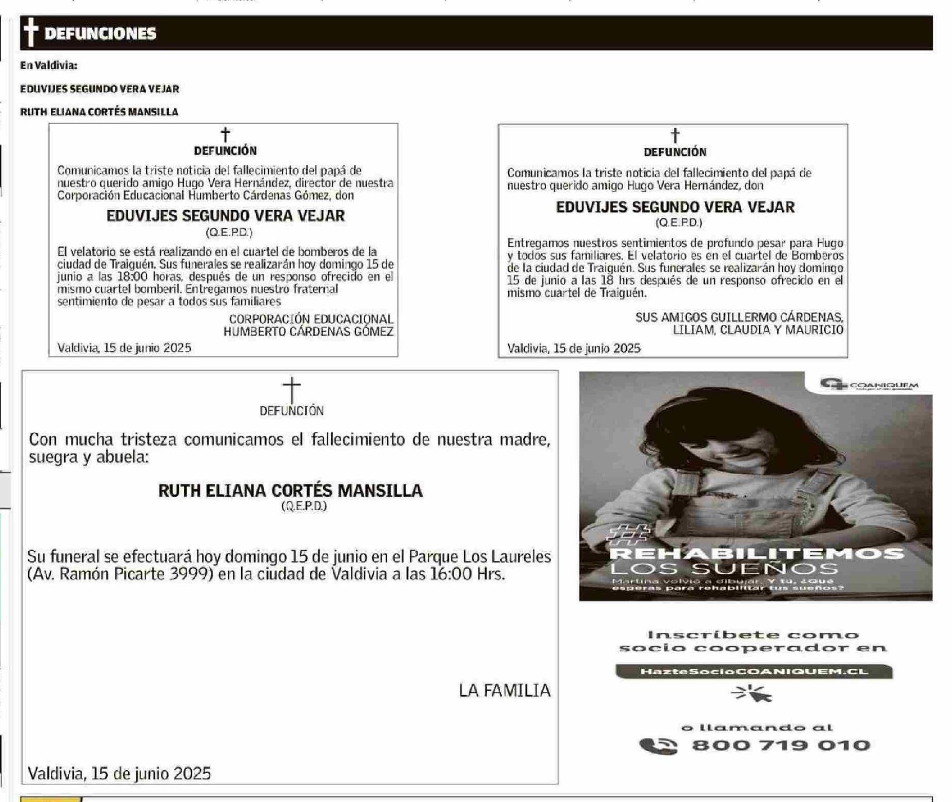 DEFUNCIONES 15-06-2025 Diario Austral Región de Los Ríos |