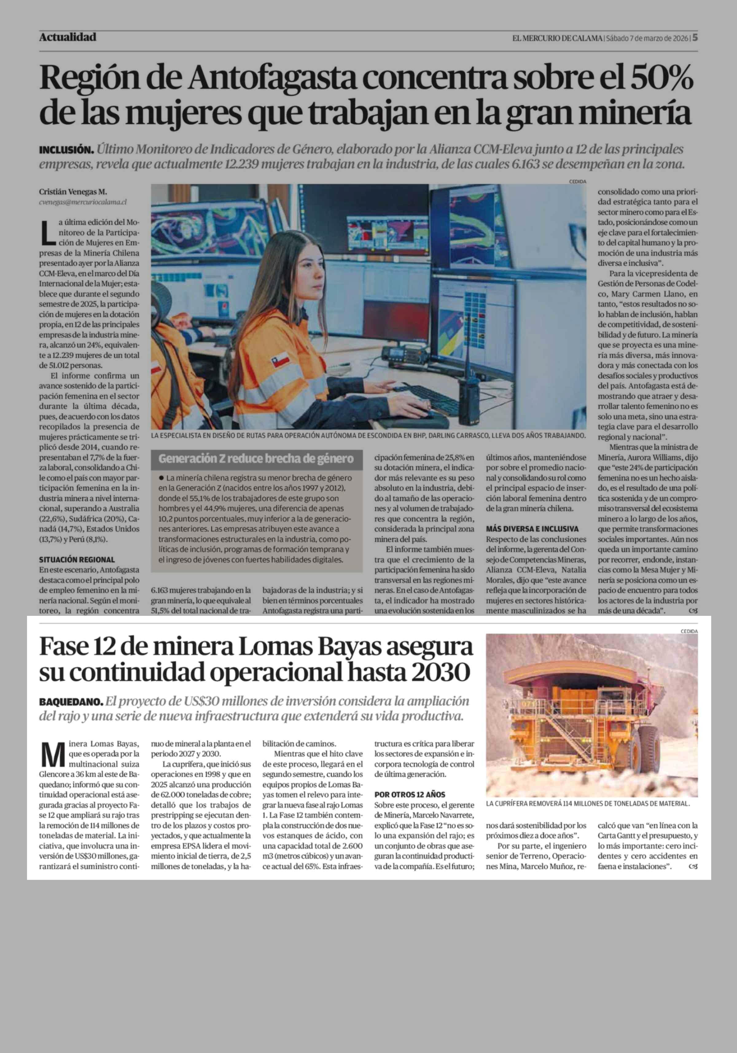 Fase 12 de minera Lomas Bayas asegura su continuidad operacional hasta 2030 07-03-2026 El Mercurio de Calama |