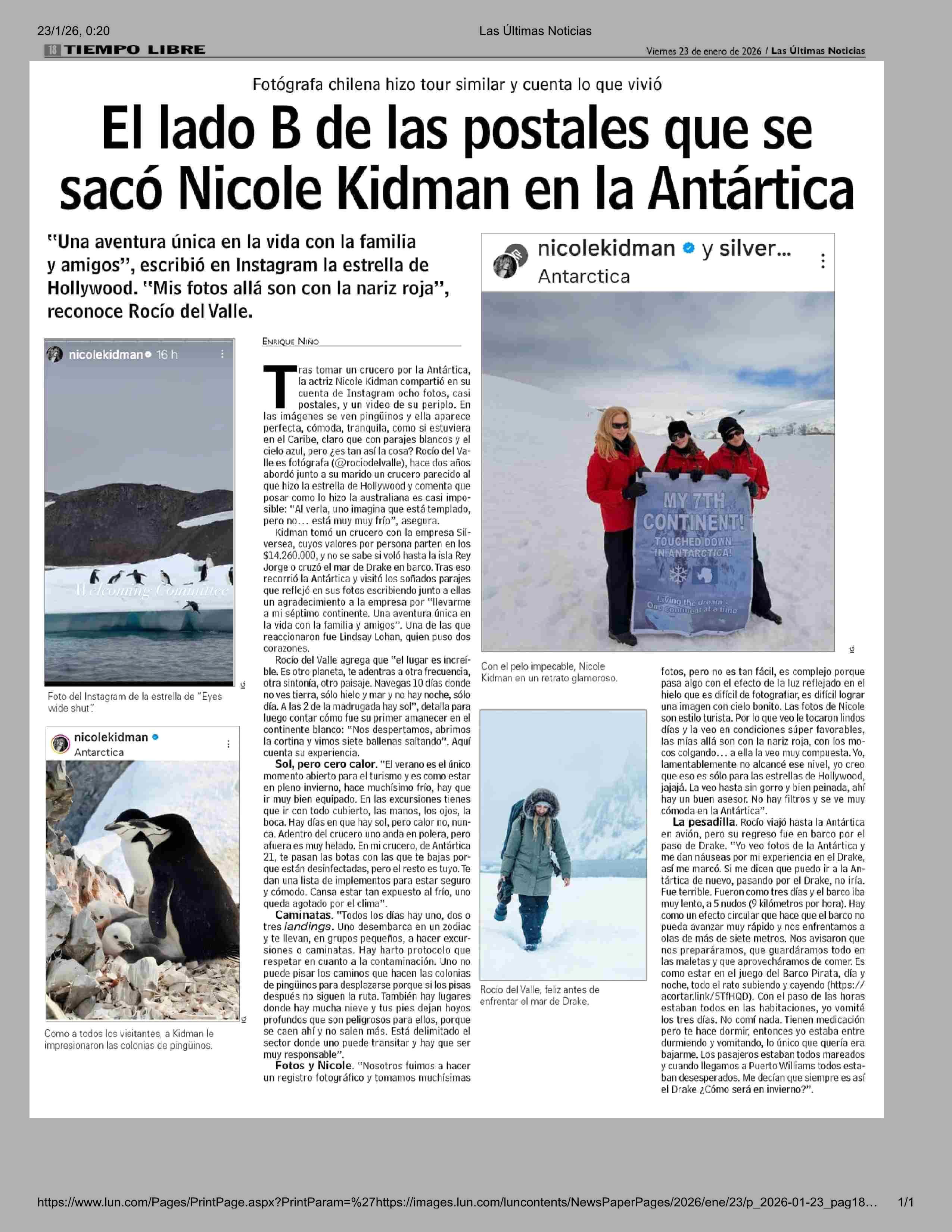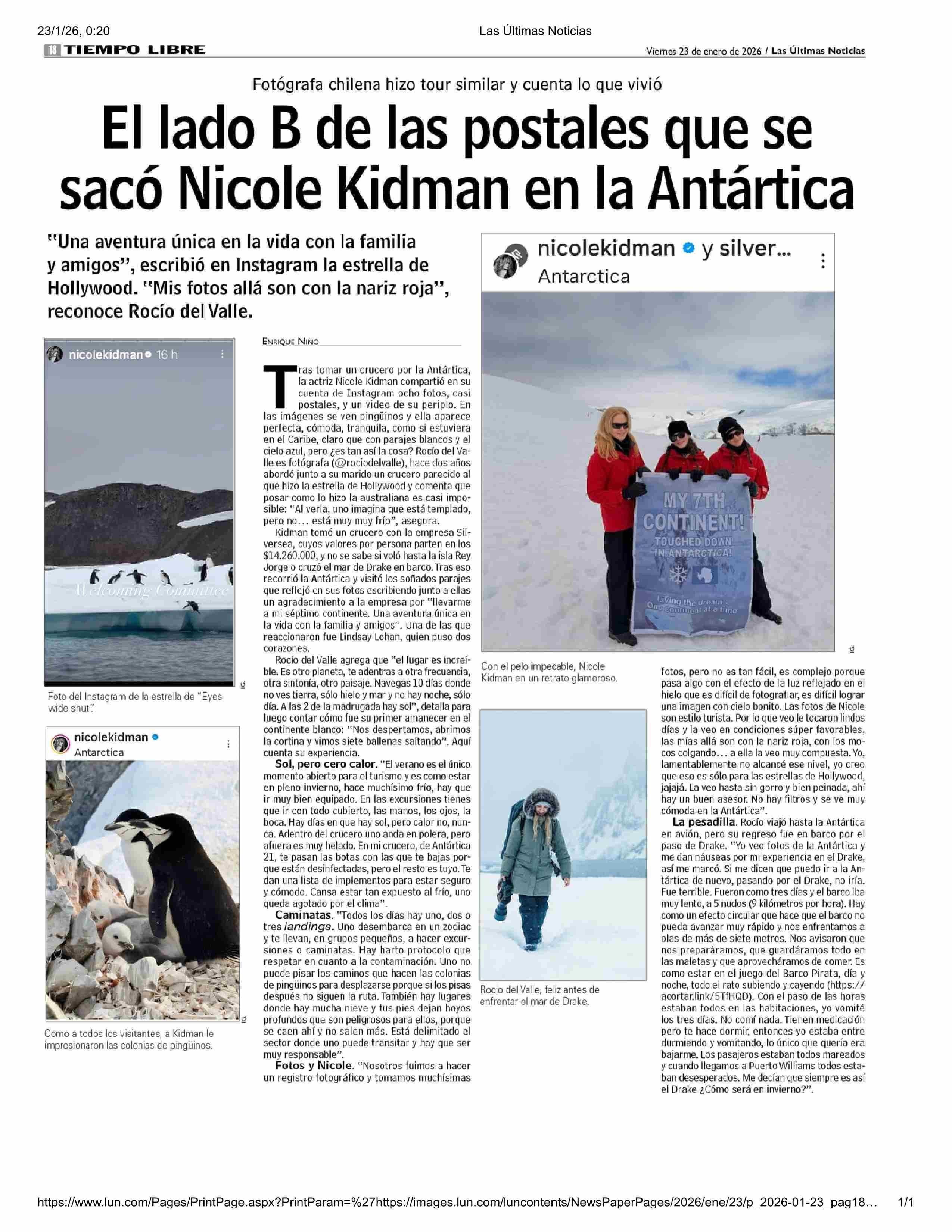 El lado B de las postales que se sacó Nicole Kidman en la Antártica 23-01-2026 Las Últimas Noticias |