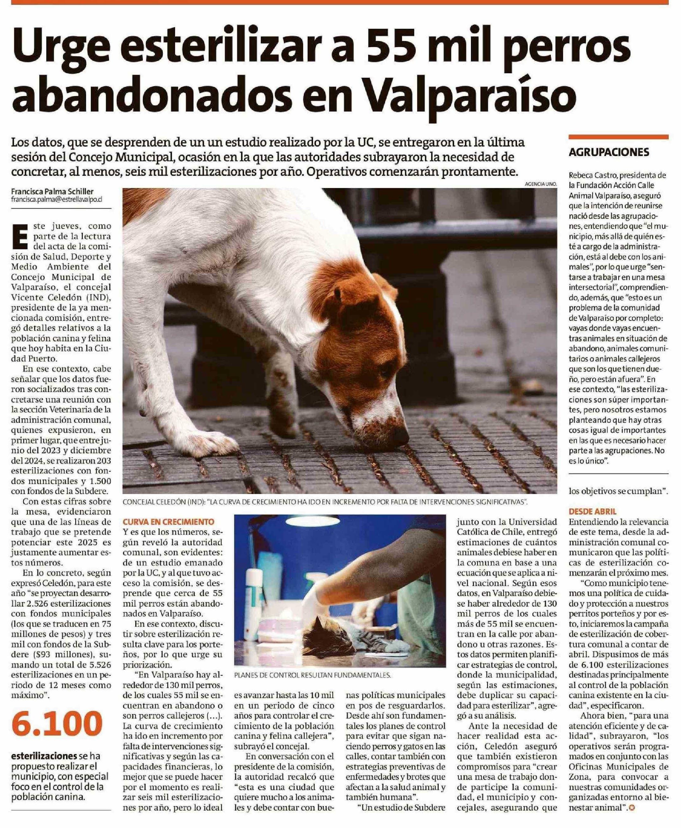 Urge esterilizar a 55 mil perros abandonados en Valparaiso 15-03-2025 La Estrella de Valparaíso |