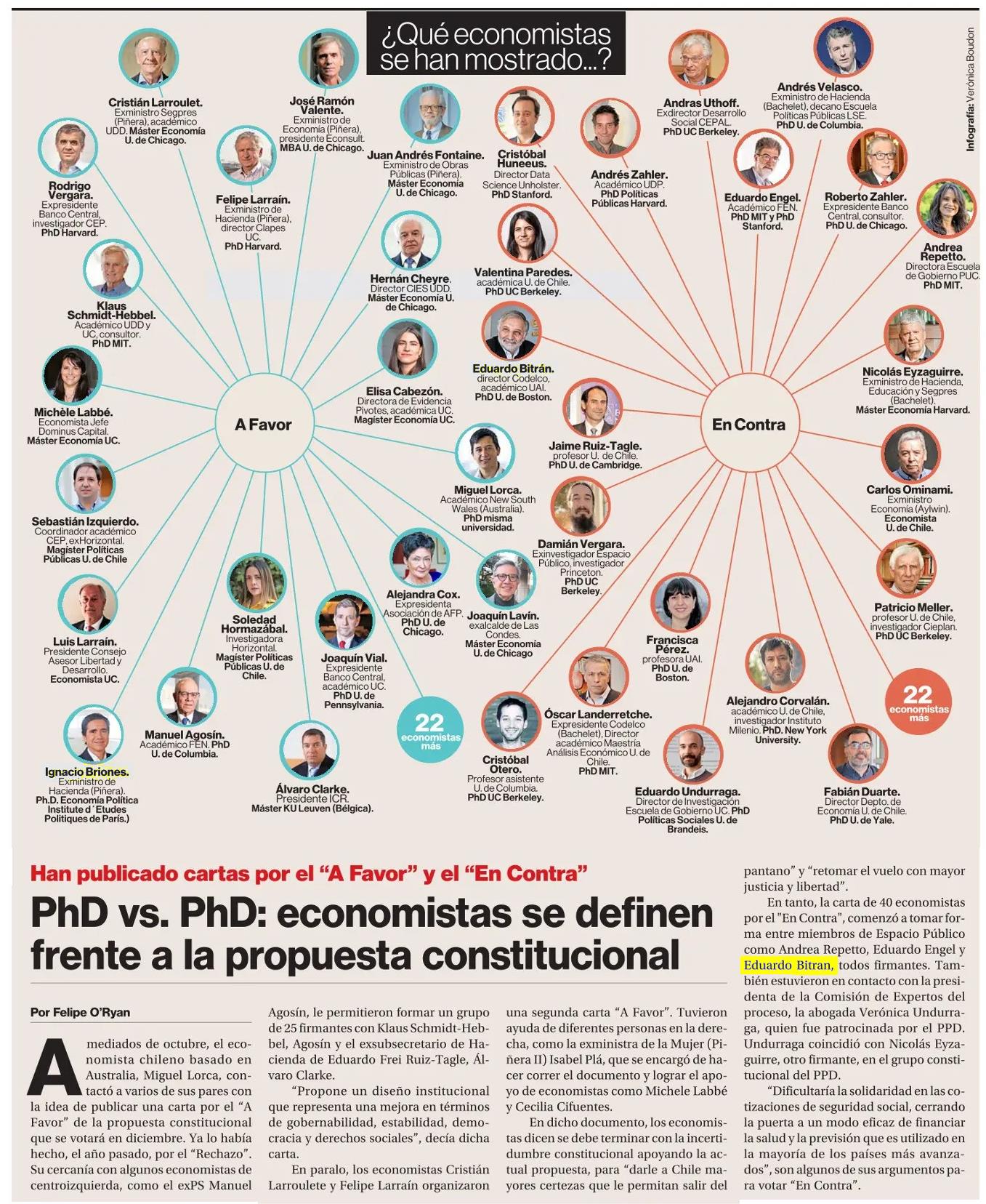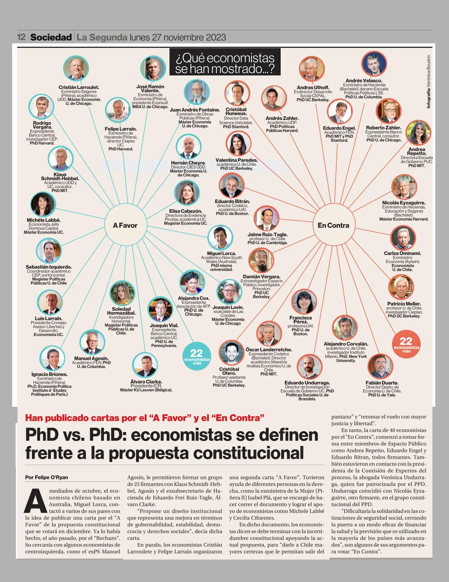PhD vs. PhD: economistas se definen frente a la propuesta constitucional 27-11-2023 La Segunda |