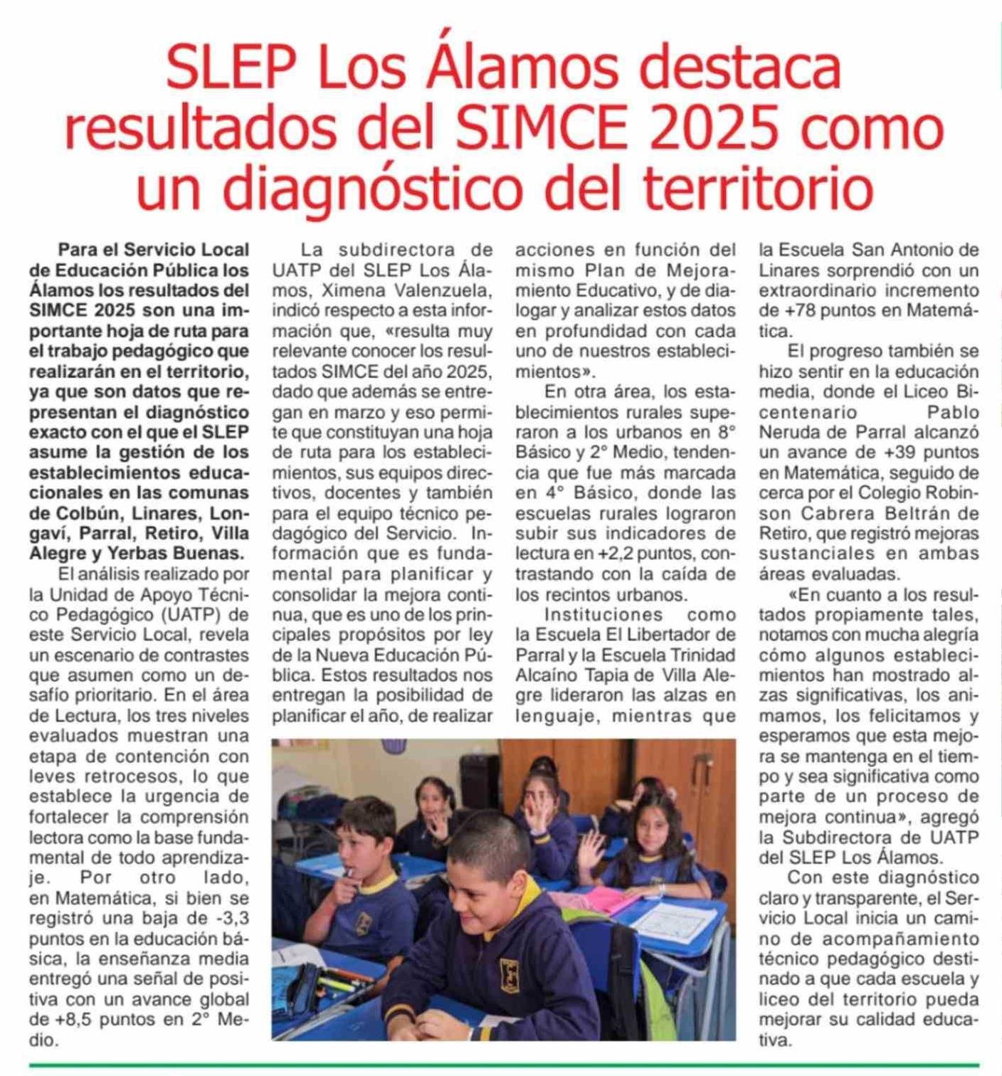 SLEP Los Alamos destaca resultados del SIMCE 2025 como un diagnóstico del territorio 14-03-2026 Maule Hoy |