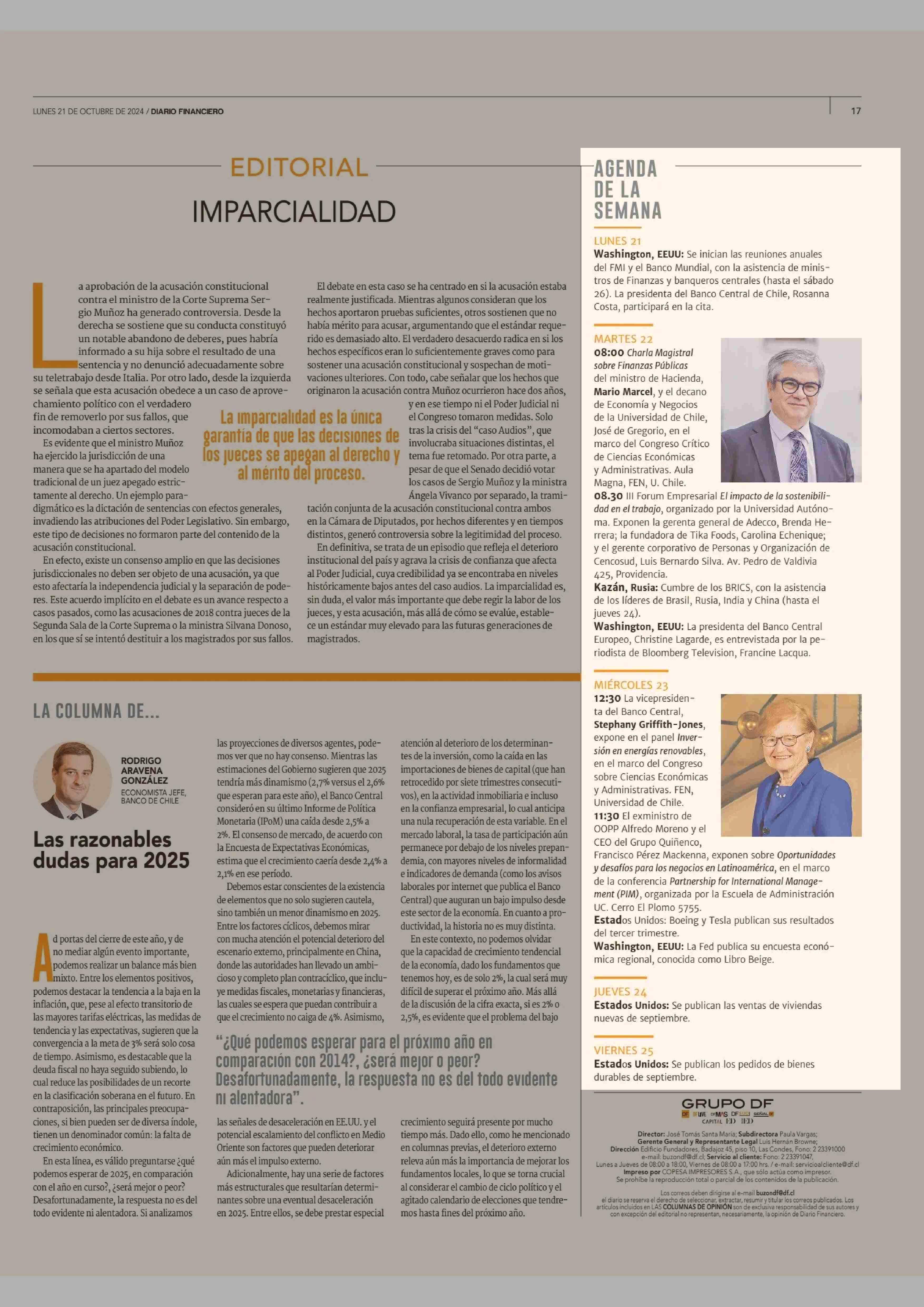AGENDA DE LA SEMANA 21-10-2024 Diario Financiero |