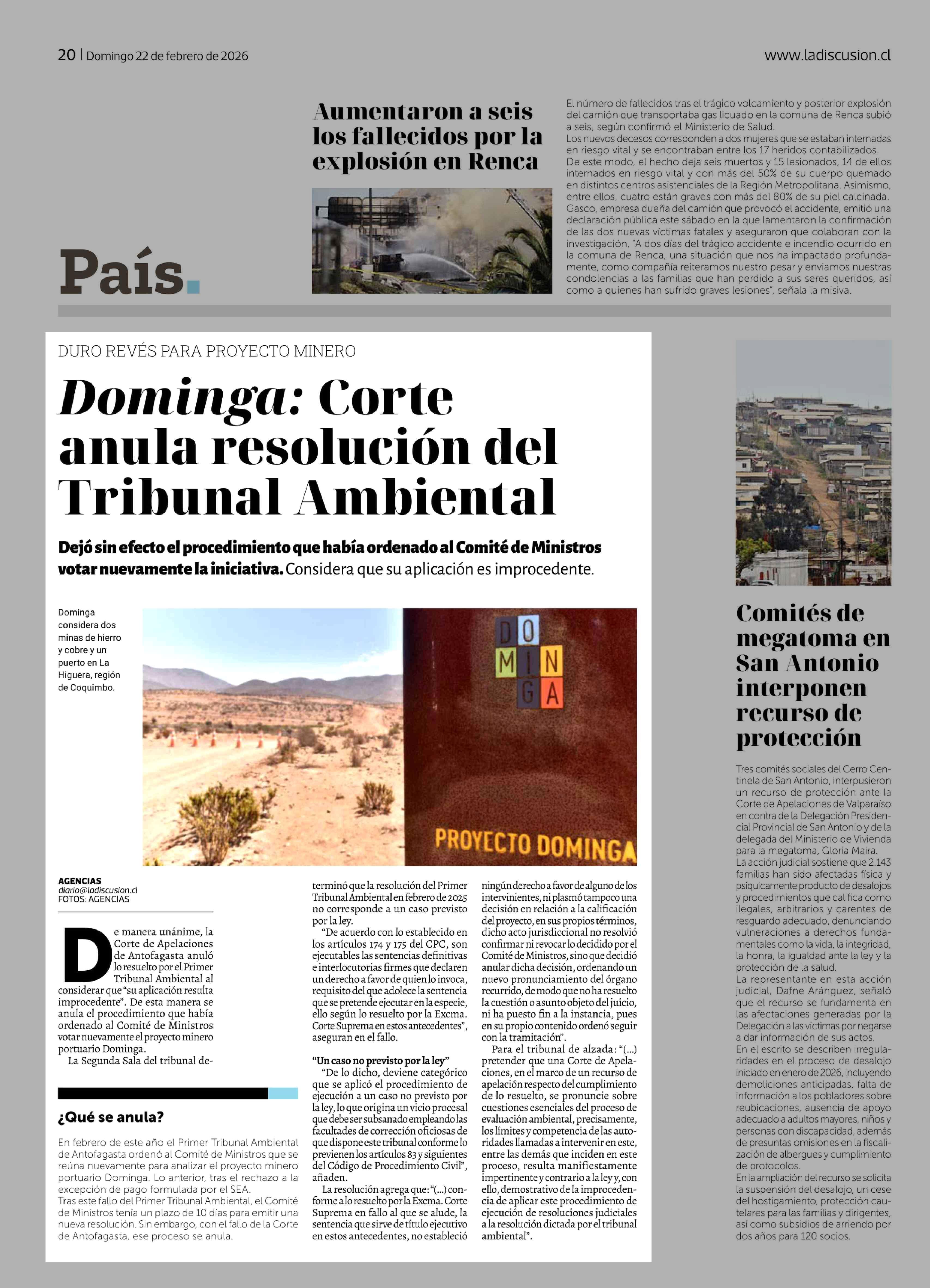 Dominga: Corte anula resolución del Tribunal Ambiental 22-02-2026 La Discusión |