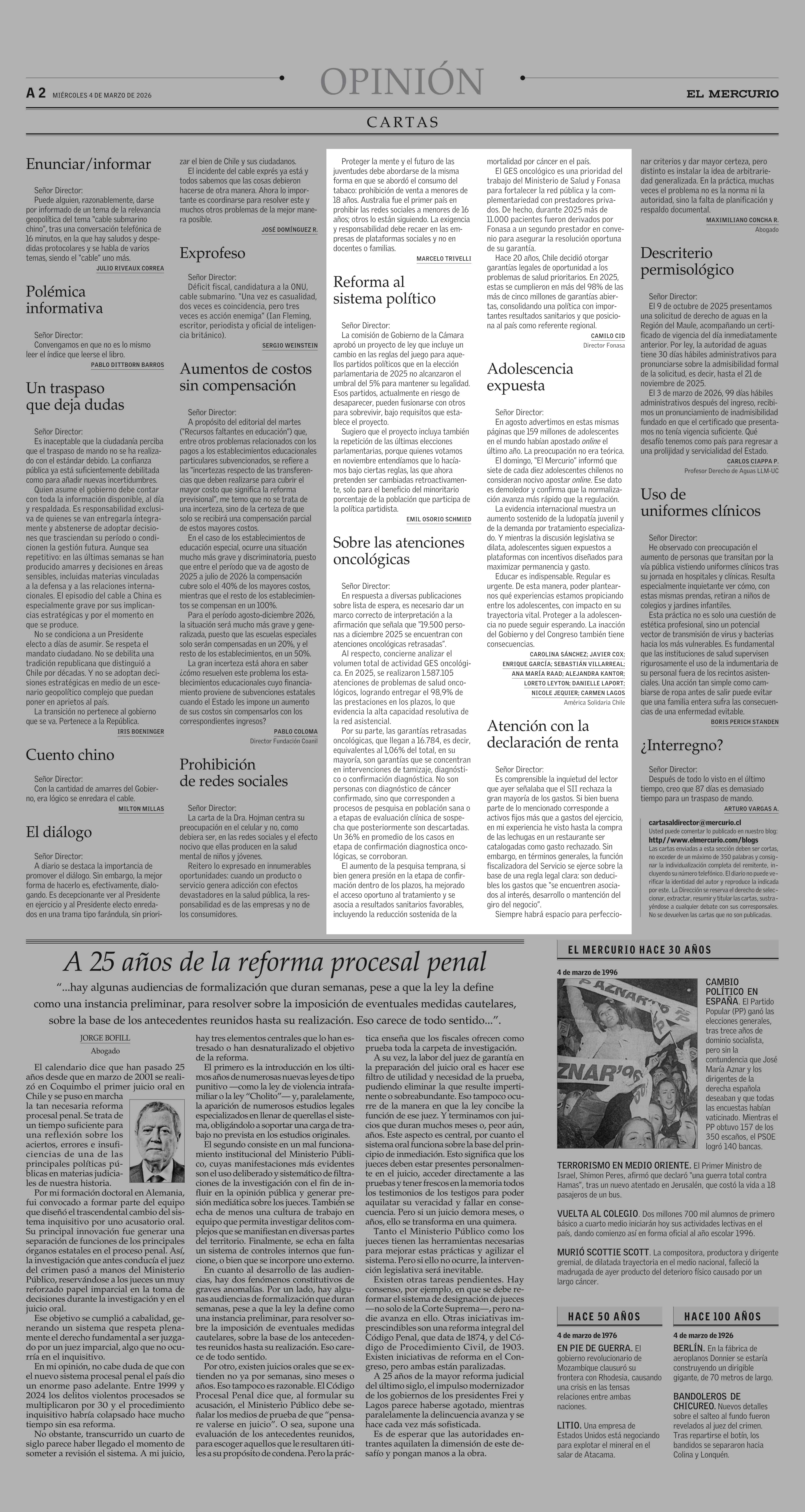 Sobre las atenciones oncológicas 04-03-2026 El Mercurio |