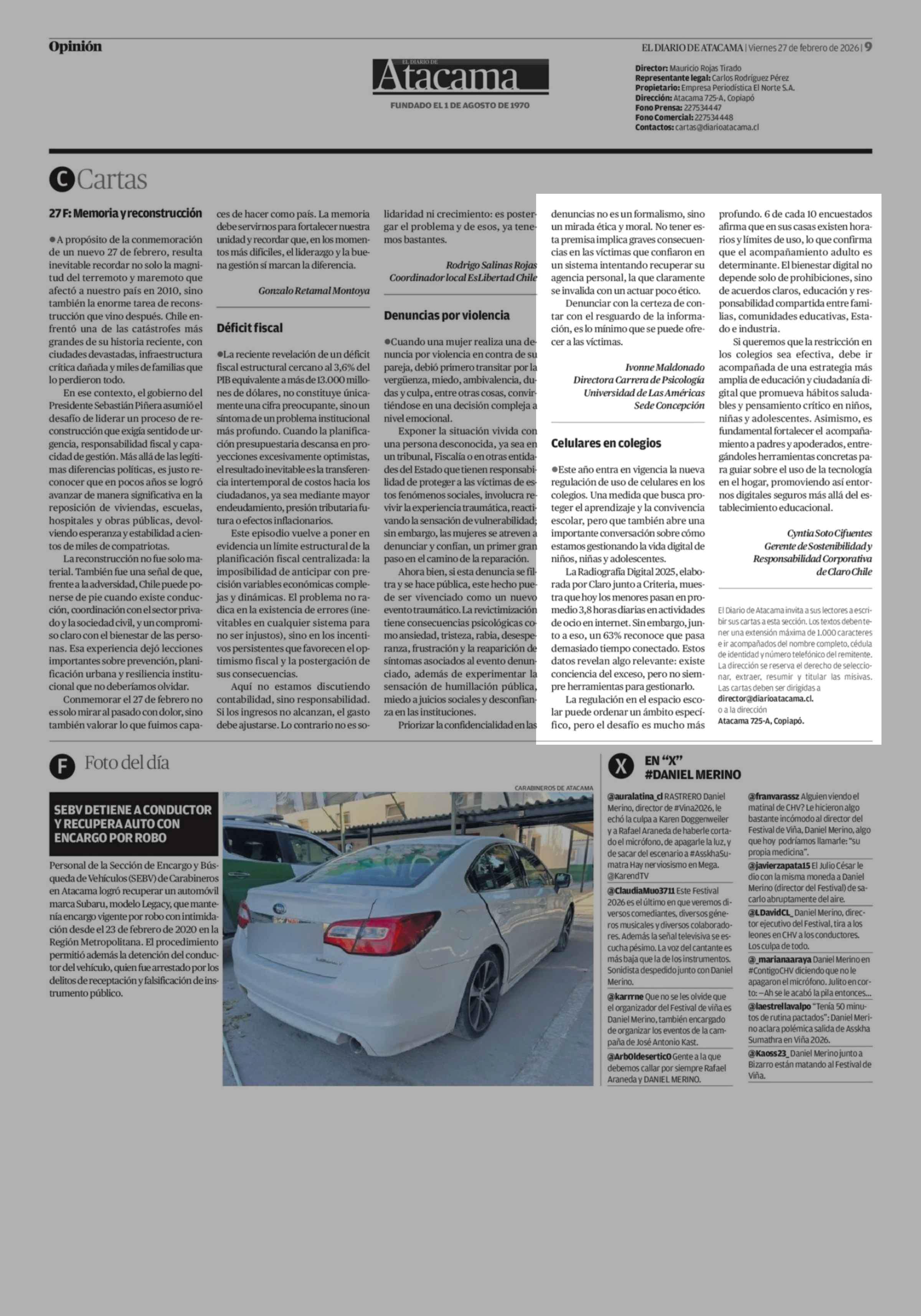 Fuente: El Diario de Atacama (El Diario de Atacama) Página(s): 9