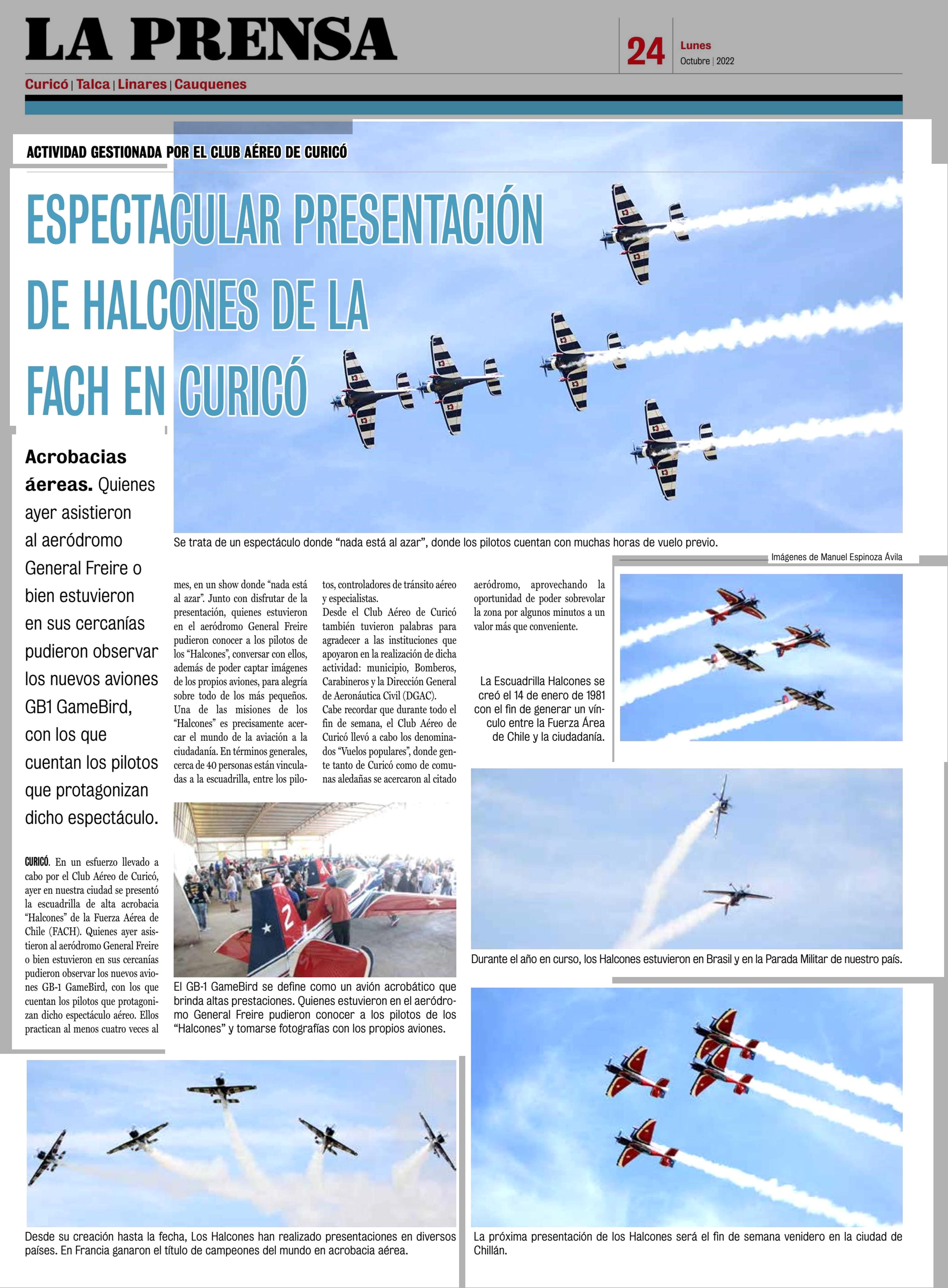 ESPECTACULAR PRESENTACIÓN DE HALCONES DE LA FACH EN CURICÓ 24-10-2022 La Prensa de Curicó |
