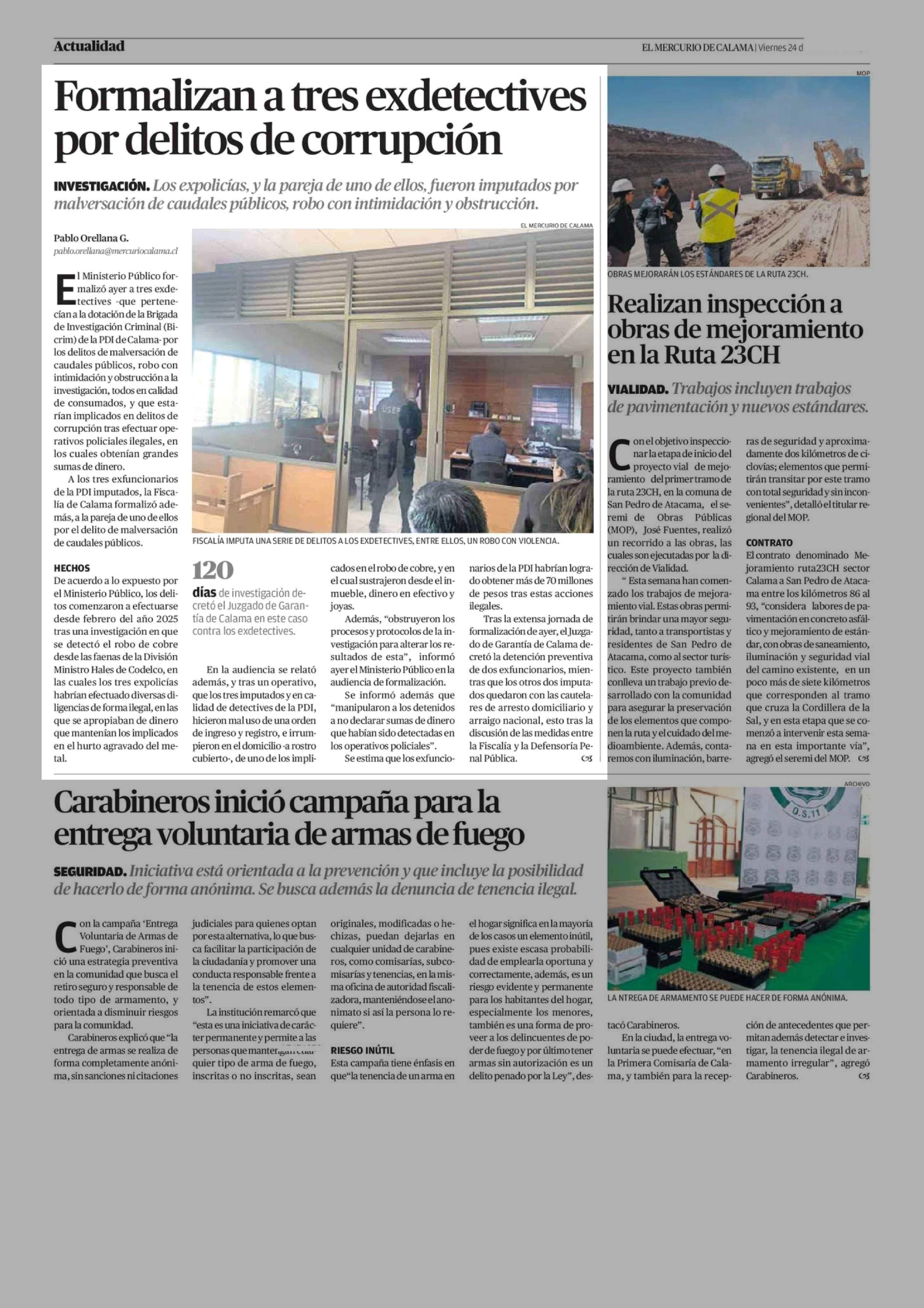 Formalizan a tres exdetectives por delitos de corrupción 24-04-2026 El Mercurio de Calama |