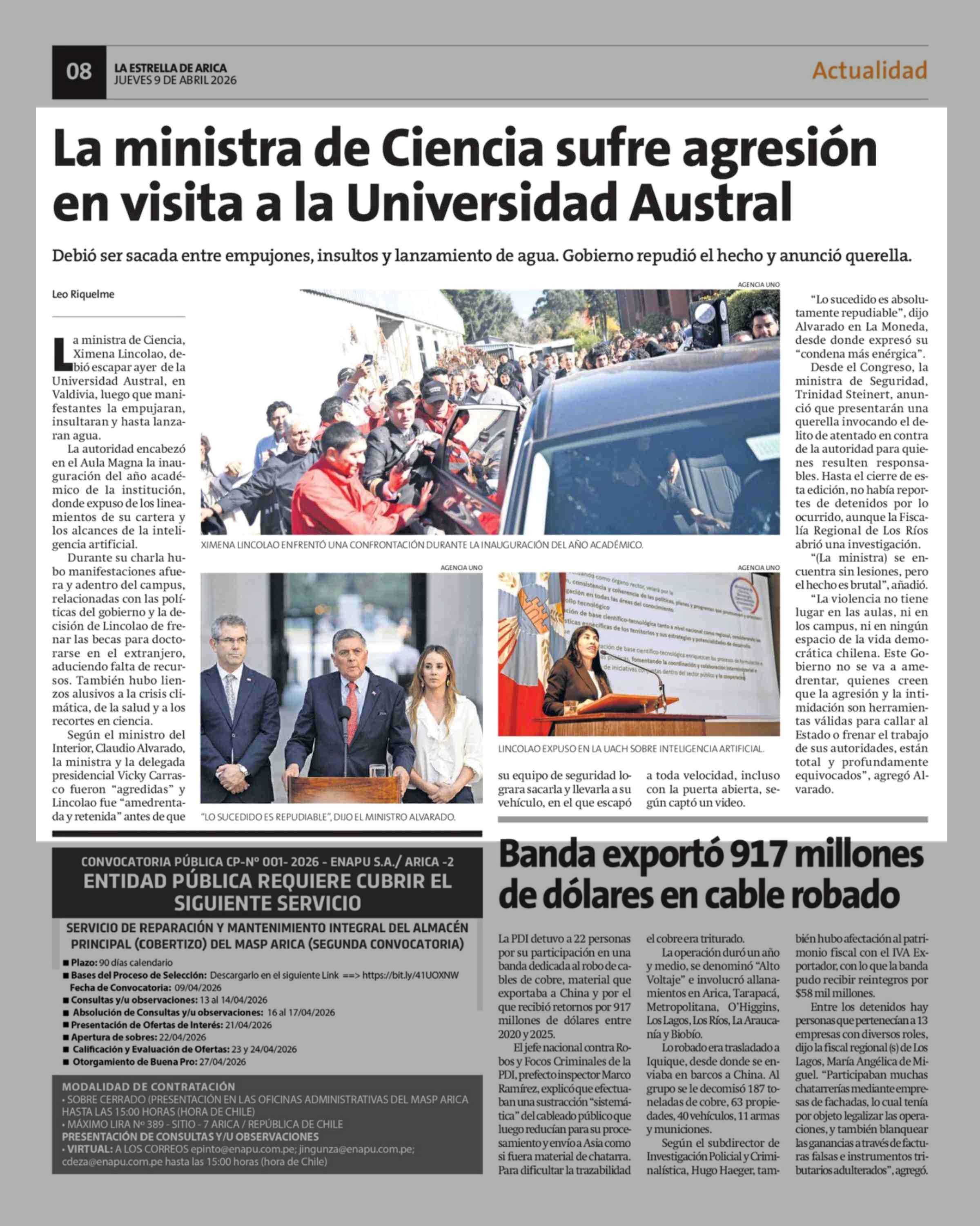 Fecha: 09-04-2026 Sector: Noticia general Región: Región de Arica y Parinacota