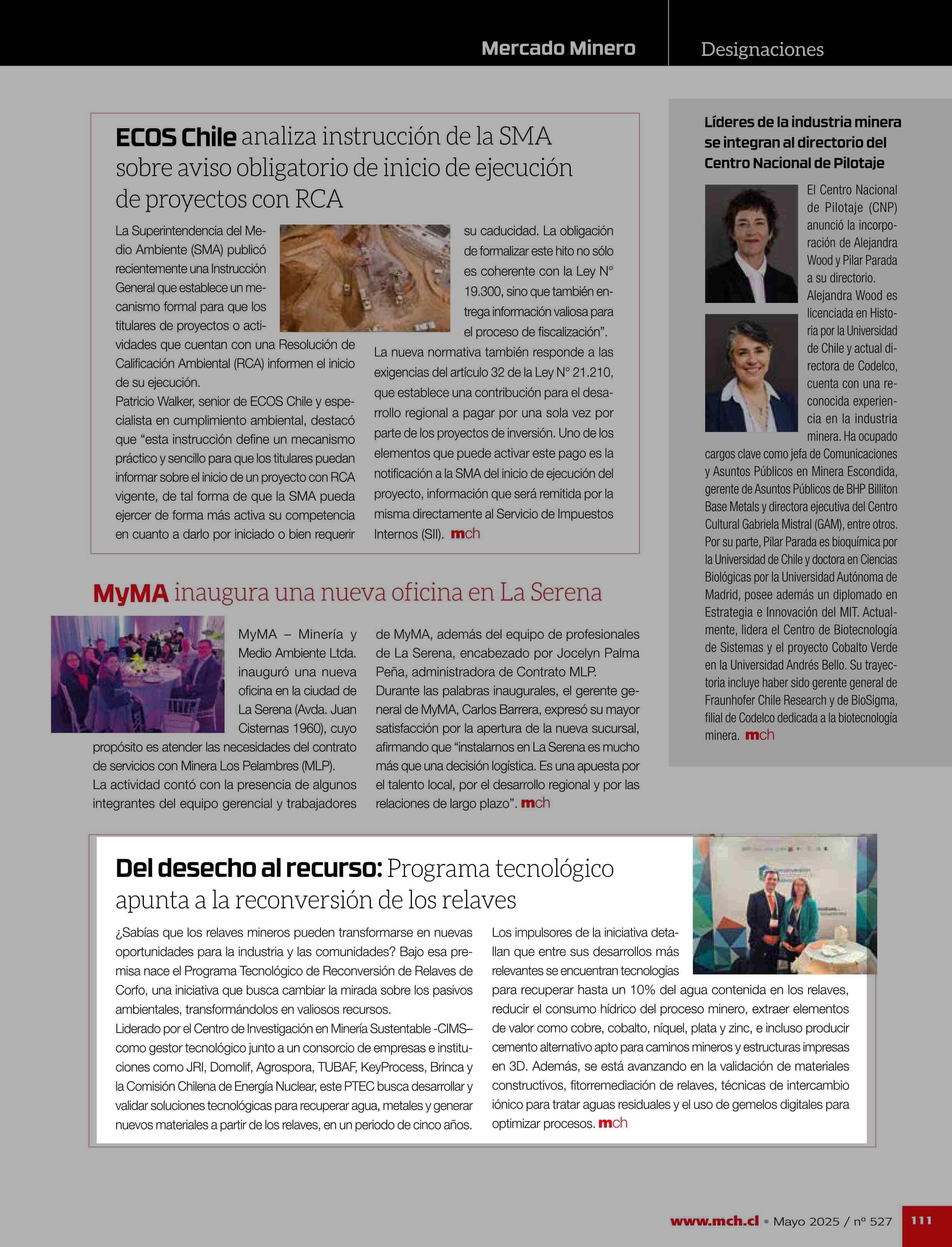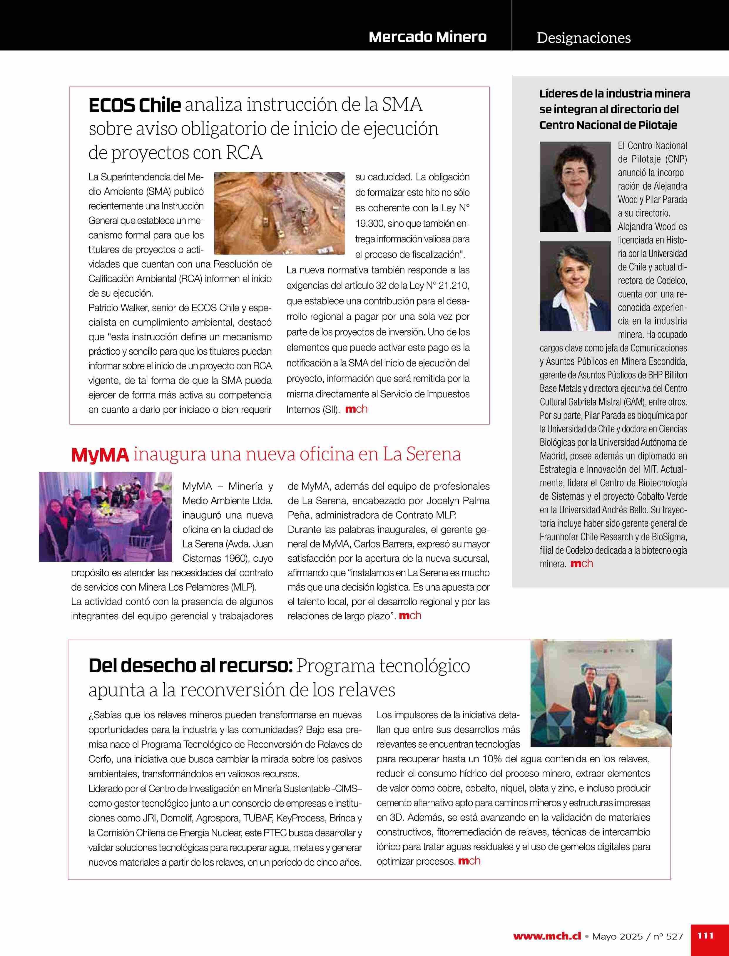 Del desecho al recurso: Programa tecnológico apunta a la reconversión de los relaves 27-05-2025 Revista Minería Chilena |