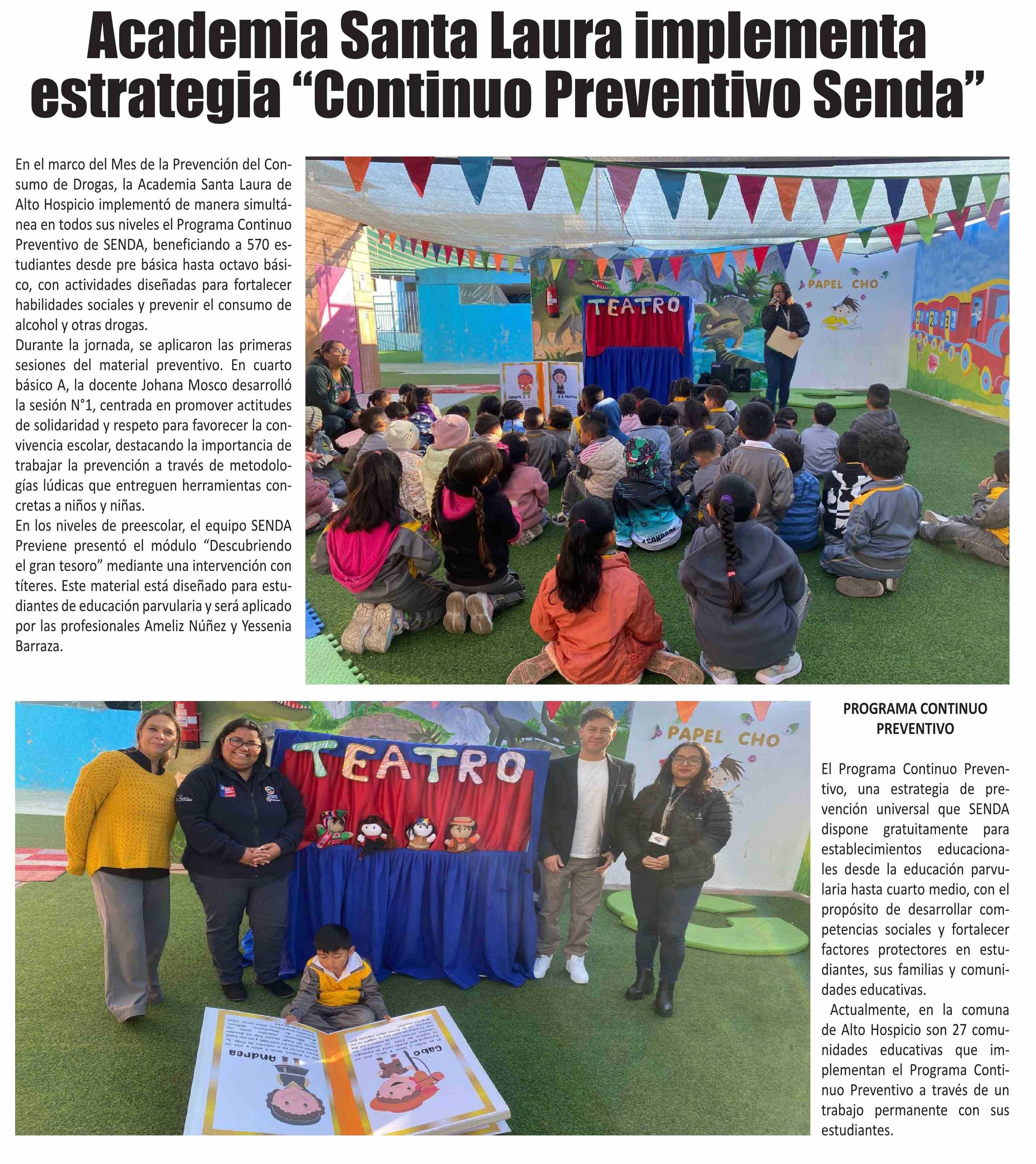 Academia Santa Laura implementa estrategia “Continuo Preventivo Senda” 23-06-2025 El Longino |