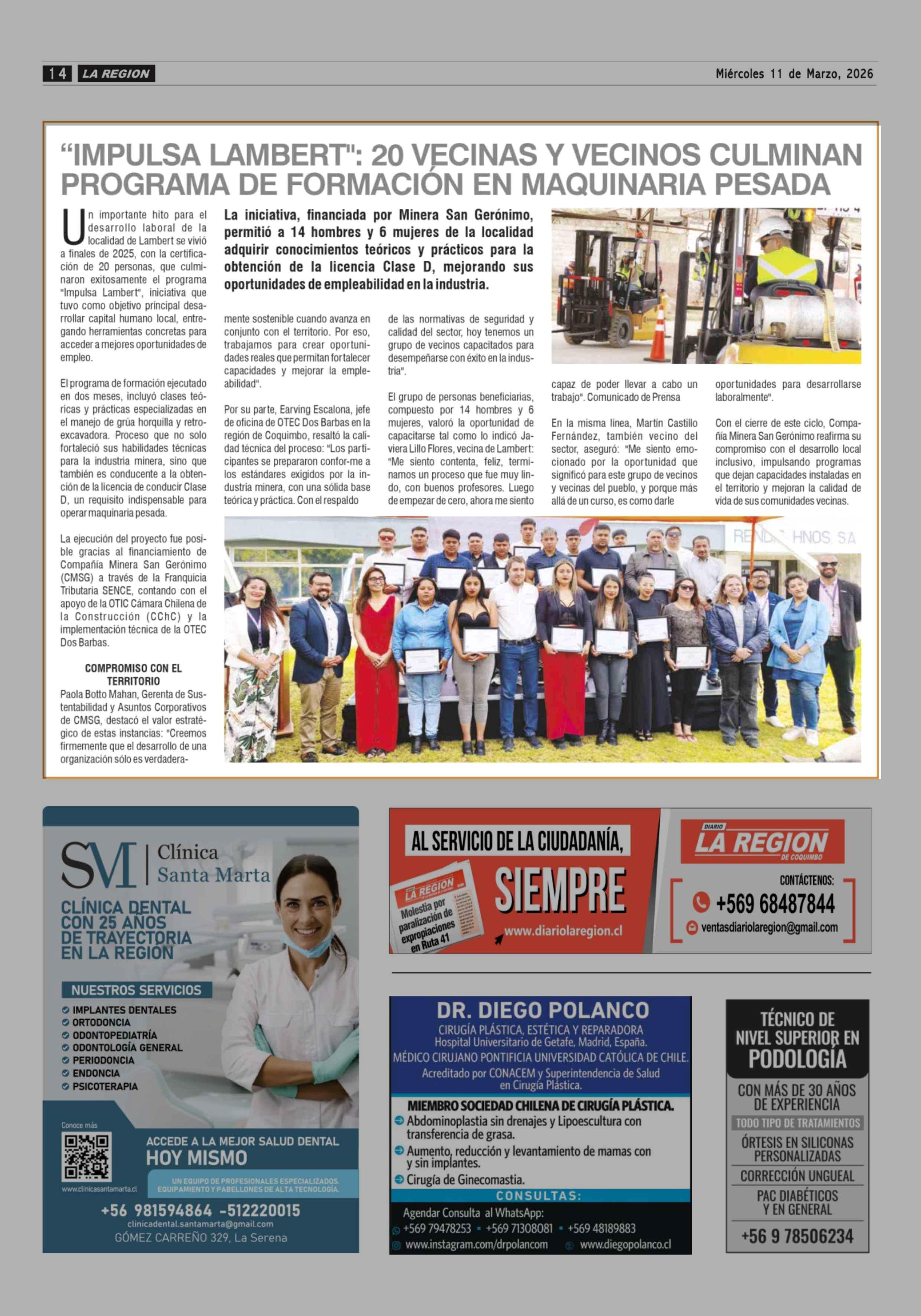 Título: "IMPULSA LAMBERT": 20 VECINAS Y VECINOS CULMINAN PROGRAMA DE FORMACIÓN EN MAQUINARIA PESADA