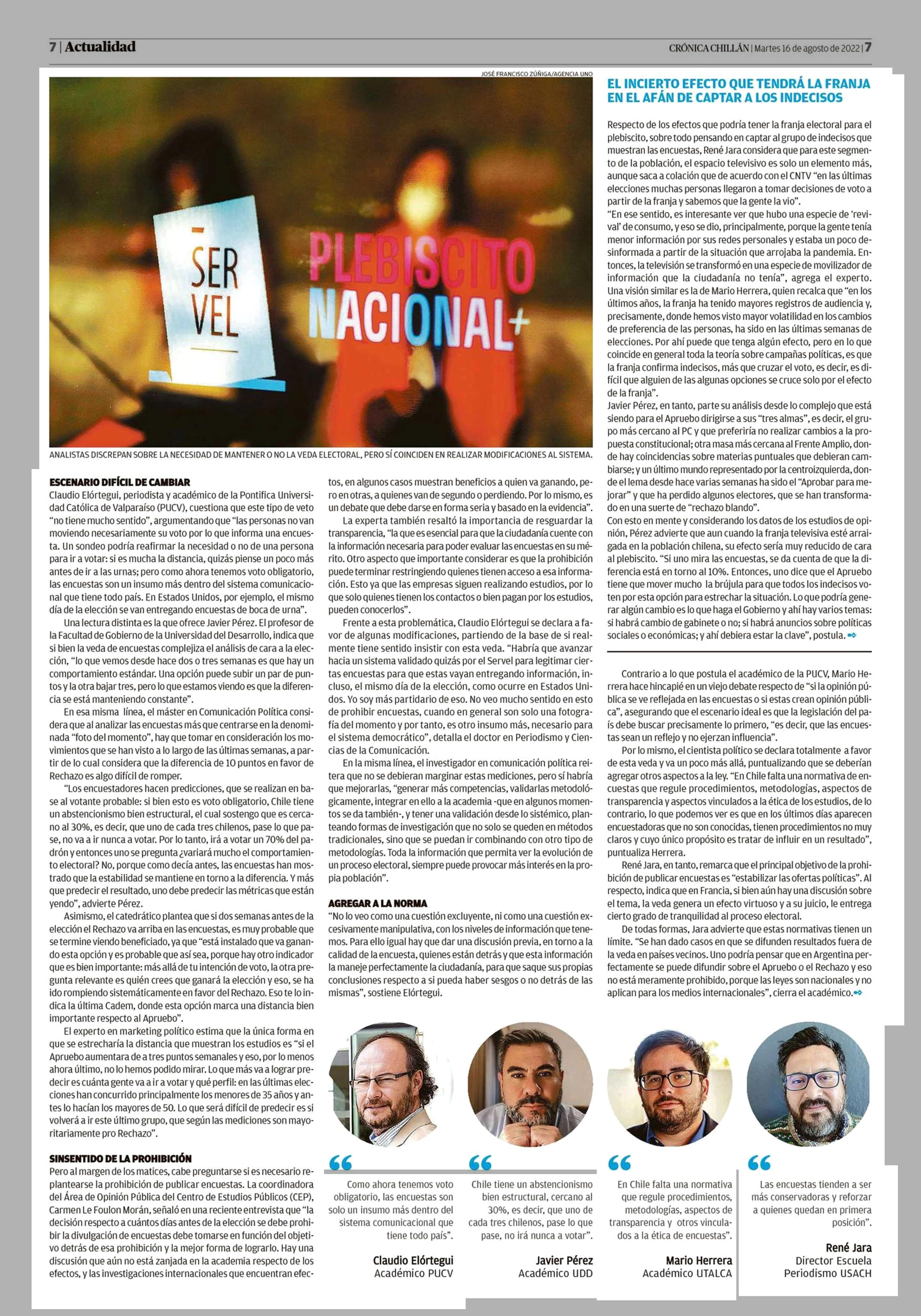 ¿ Quién gana y quien pierde con la veda de las encuestas? 16-08-2022 Crónica de Chillán |