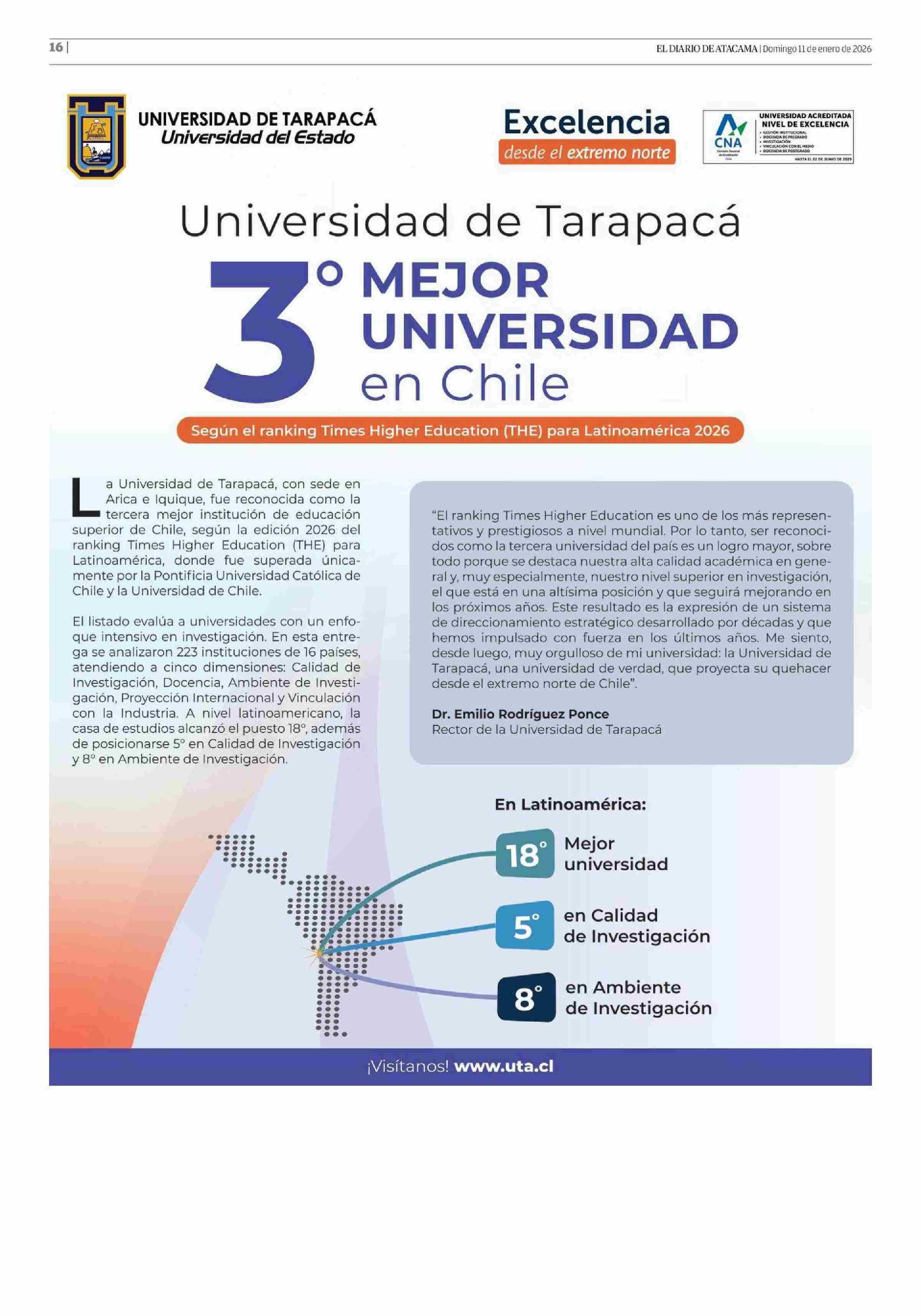 Aviso Universidad: UNIVERSIDAD DE TARAPACVÁ 11-01-2026 El Diario de Atacama |