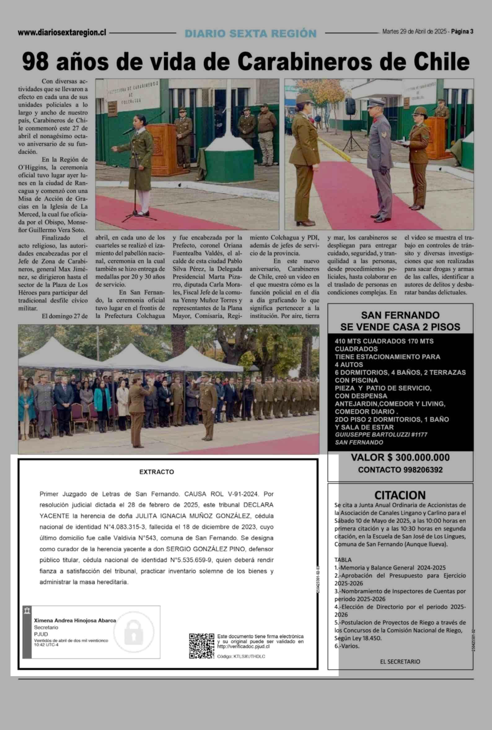 EXTRACTOS: 29-04-2025 Diario VI Región |