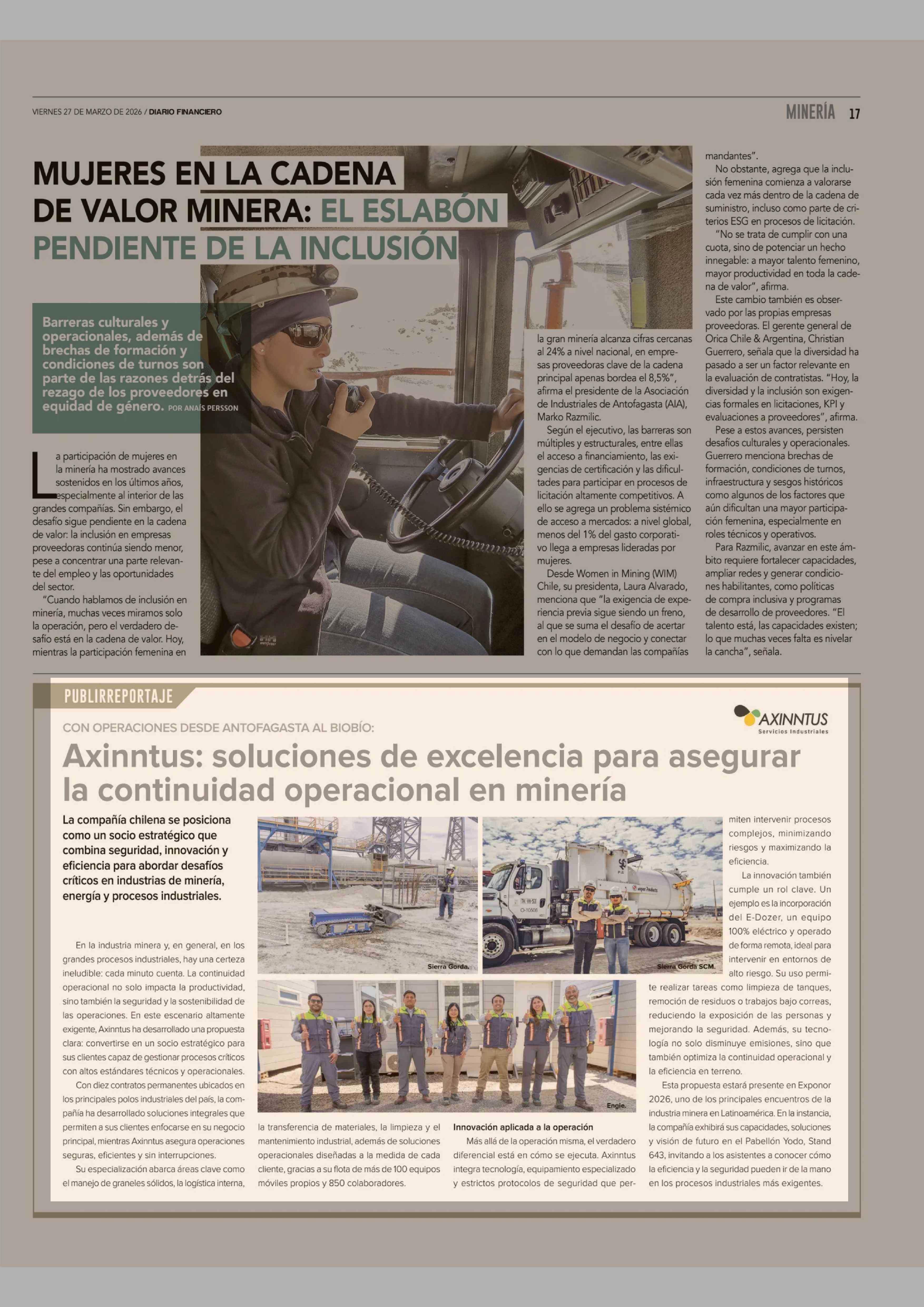Axinntus: soluciones de excelencia para asegurar la continuidad operacional en minería 27-03-2026 Diario Financiero |