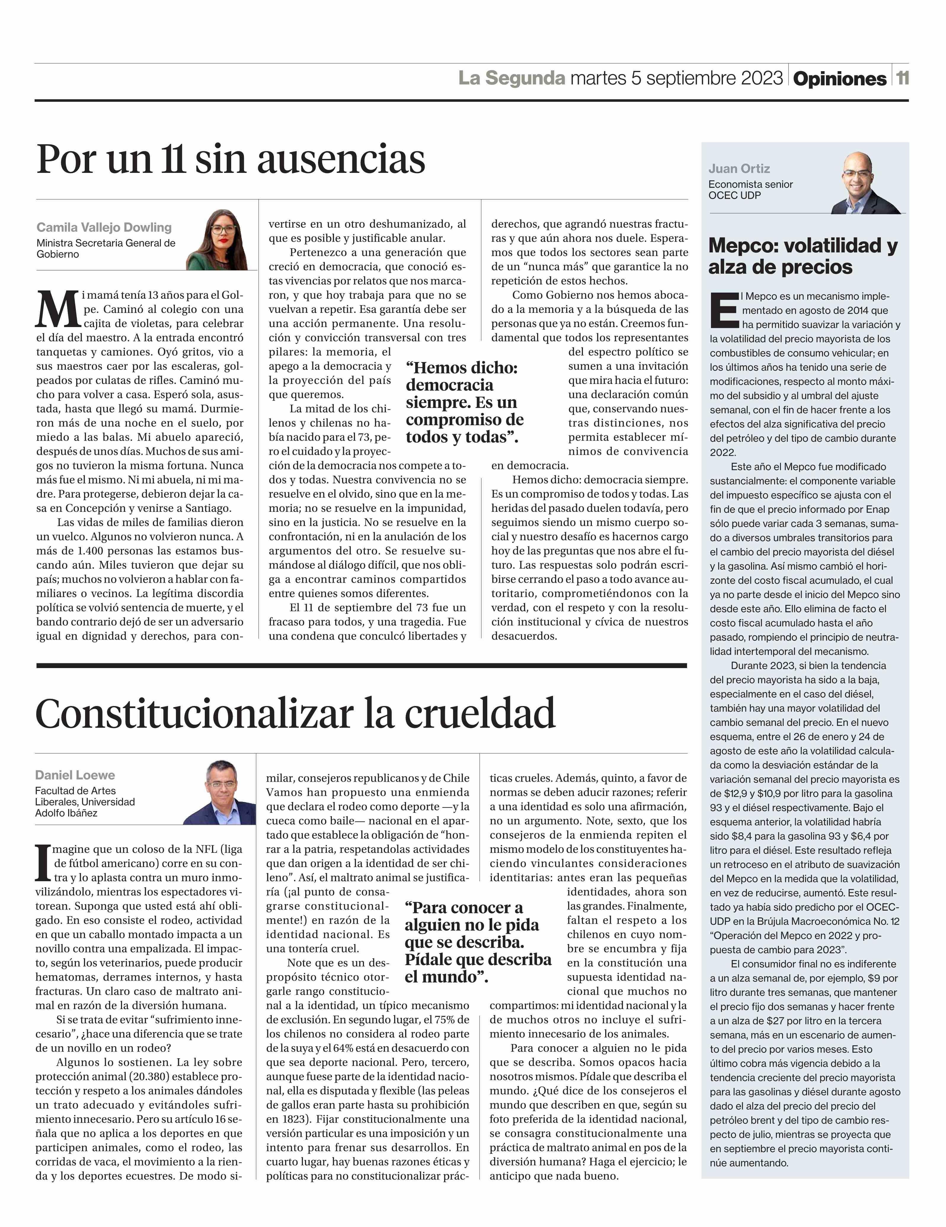 Constitucionalizar la crueldad 05-09-2023 La Segunda |