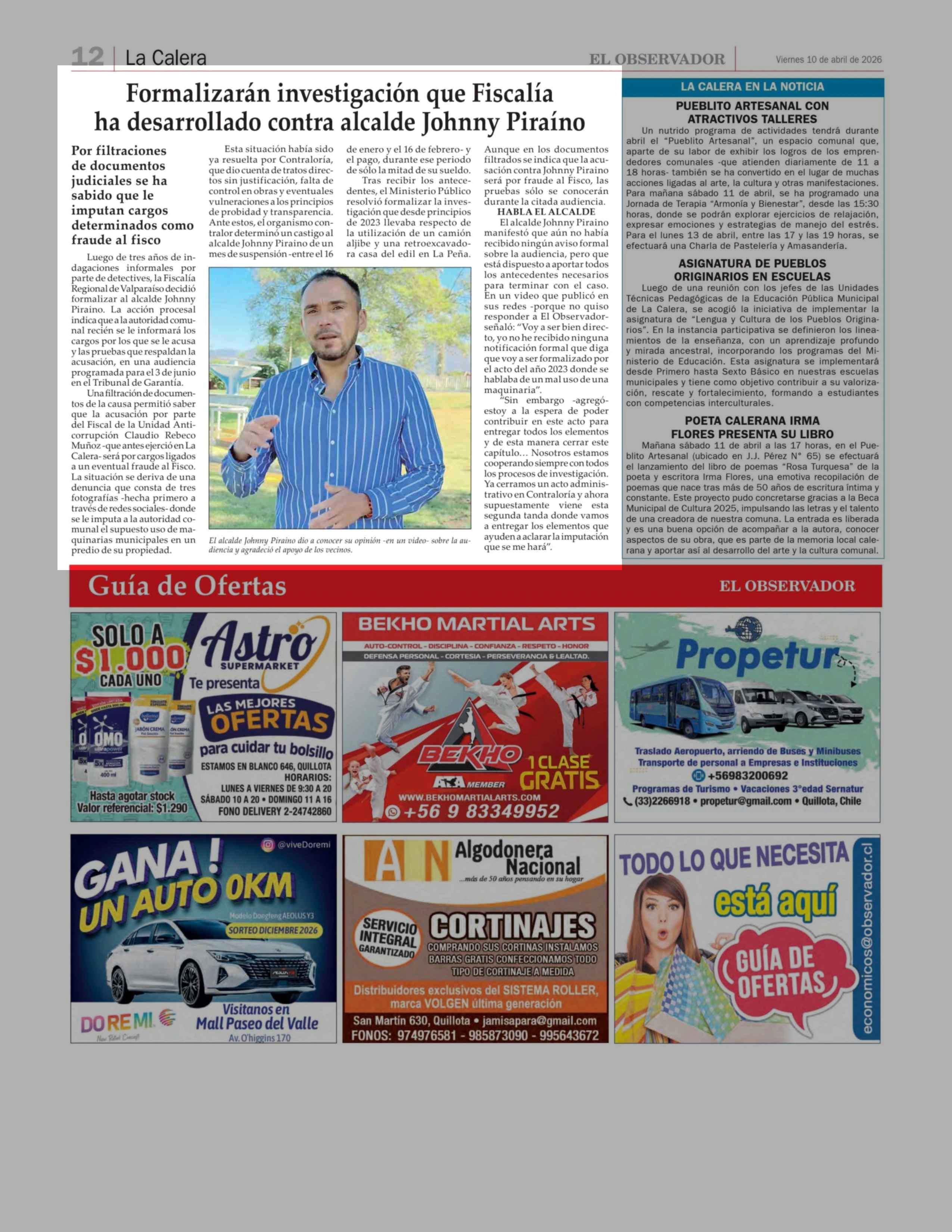 Formalizarán investigación que Fiscalía ha desarrollado contra alcalde Johnny Piraíno 10-04-2026 El Observador |